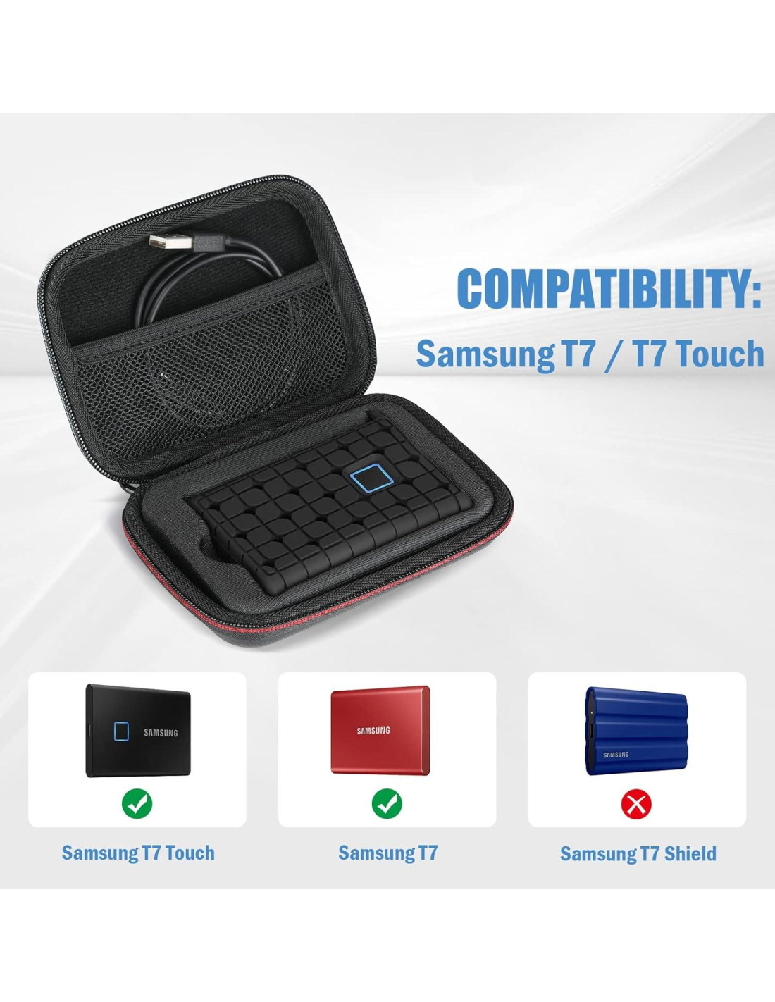 - [Compatibilidad] Funda EVA a Prueba de Golpes con Cubierta de Silicona Suave para Samsung T7 / T7 Touch Portátil 500GB / 1TB / 2TB SSD Unidades de Estado Sólido Externas (Solo Funda)