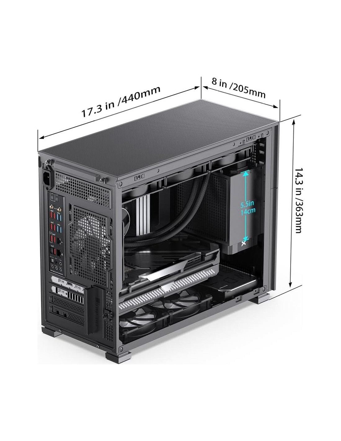 - Caja de Computadora Placa Base: MATX/MicroATX GPU: 330-400mm PSU: ATX/SFX: 100mm-220mm L max