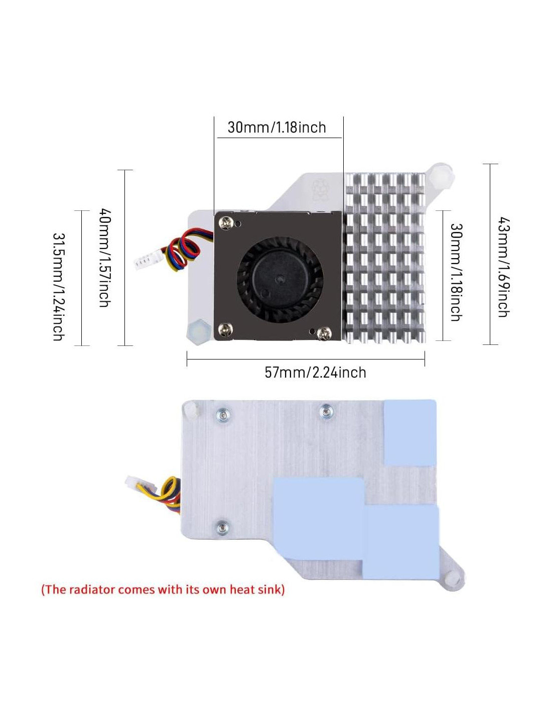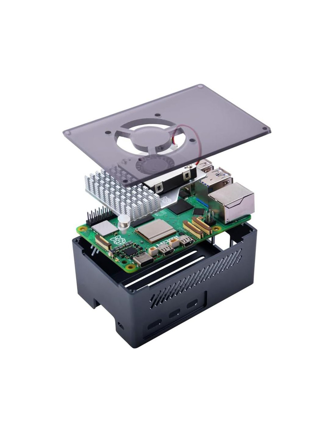 - Enfriador Activo para Raspberry Pi 5 - El Enfriador Activo para Raspberry Pi 5 combina un disipador de aluminio con un ventilador PWM para mantener su Raspberry Pi 5 en temperaturas óptimas de funcionamiento, asegurando un rendimiento confiable para diversas aplicaciones.
