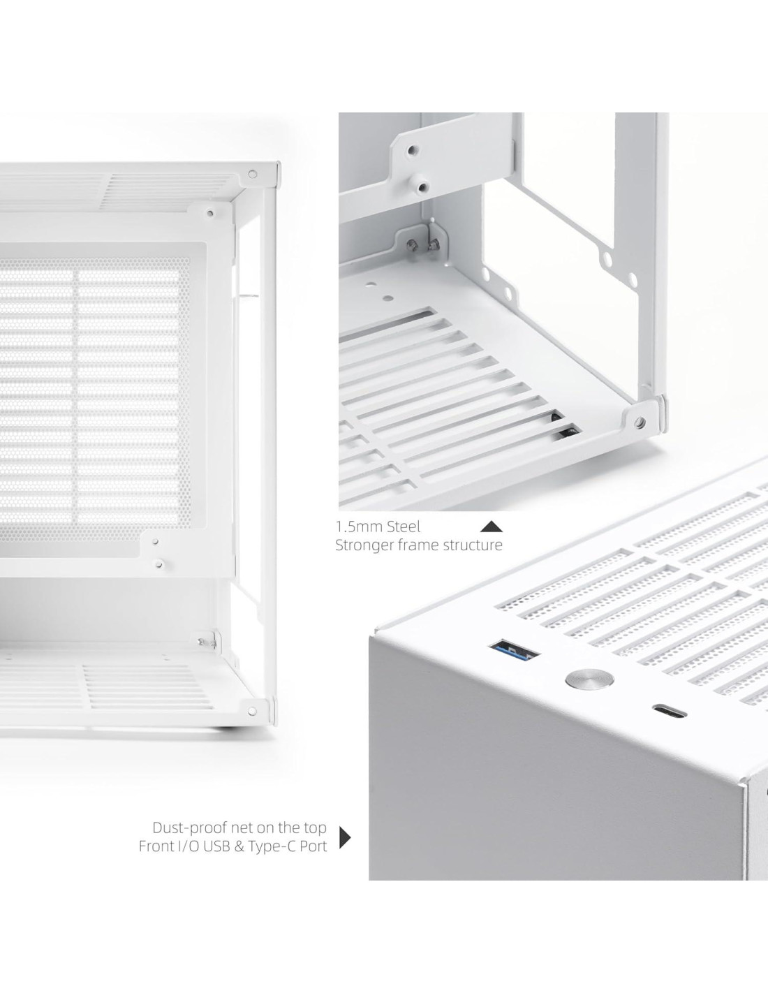 - Calidad del Material Construida de acero duradero de 1.5mm de grosor, el K39 asegura un marco fuerte y robusto. La caja también incluye dos paneles laterales ventilados de acero (1.5mm) y un panel lateral ventilado de acrílico de 3mm para reemplazo, promoviendo un flujo de aire y refrigeración efectivos.