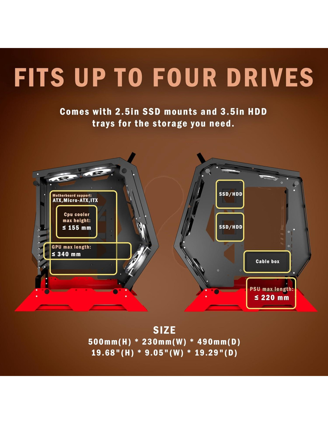 - [Expansión notable]-- La caja de computadora para juegos de torre media soporta placas base ATX / Micro-ATX / Mini-ITX.