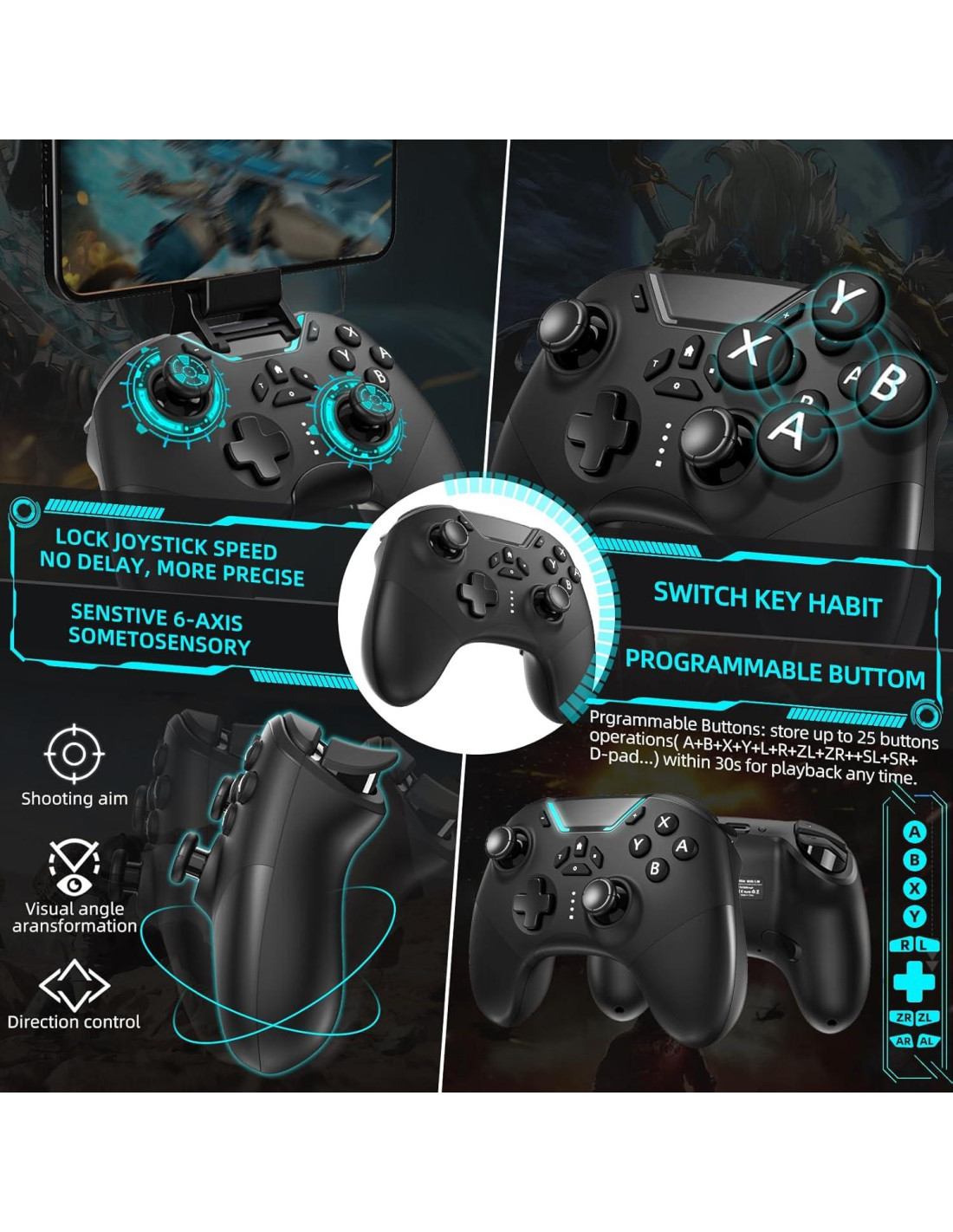 - Compatibilidad y 15H de Juego: El controlador Bluetooth funciona con Nintendo Switch/Lite/OLED, PC Windows 7 8 10 11, teléfono Android/iOS/mac/iPad/tableta, Juegos de Apple Arcade MFi/TV/Steam/Tesla. Batería potente de 650 mAh hasta 10-15 horas de juego prolongado