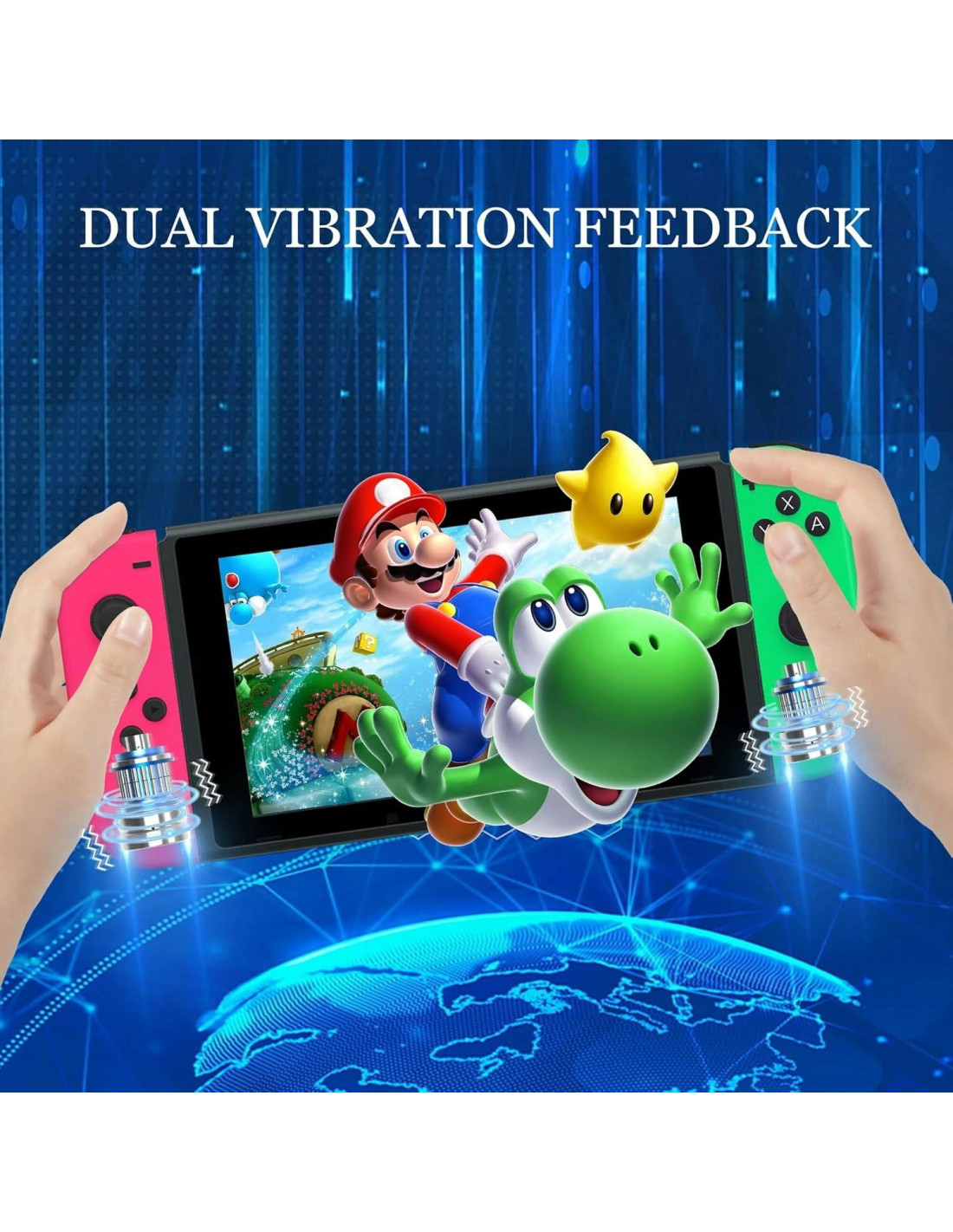 - Conjunto Integral de Accesorios: Incluye controladores rosa y verde, correas para muñeca Joypad, una funda protectora y tapas de joystick para mejorar la usabilidad y proteger tu equipo.