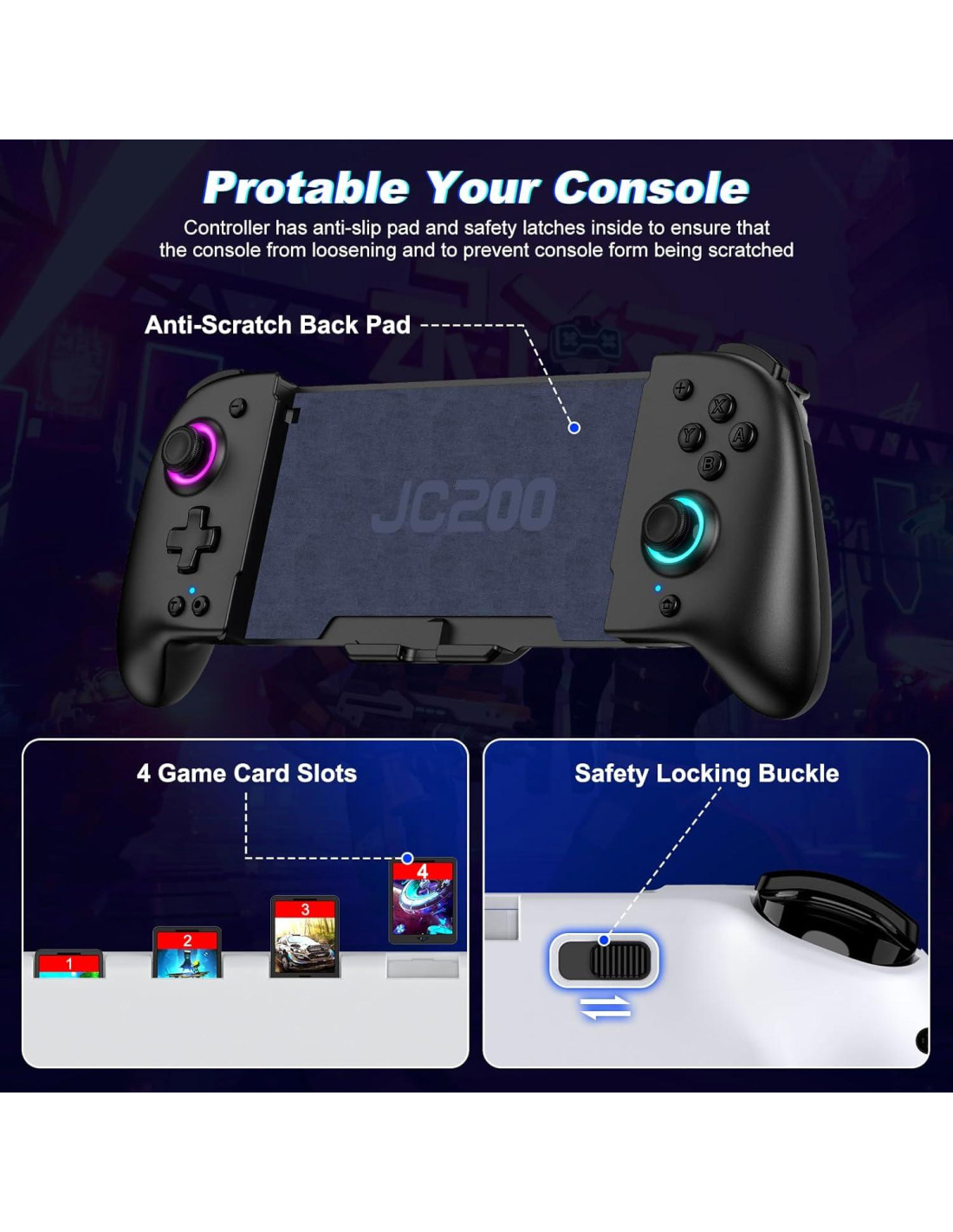 - Controlador Ergonómico para Switch/OLED. Este controlador inalámbrico de tamaño completo mejorado es compatible con Nintendo Switch y OLED. Cuenta con una almohadilla antideslizante interna y un broche de seguridad, asegurando que el controlador no se afloje o caiga. Nuestro controlador de switch está diseñado con ergonomía, y con su agarre cómodo y textura antideslizante que se adapta perfectamente a tu mano. Proporciona un excelente agarre y comodidad durante largas sesiones de juego, evitando que se deslice
