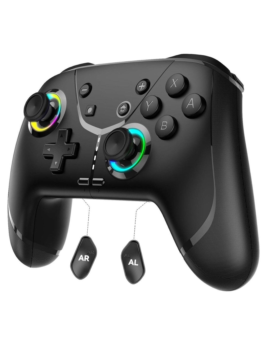 - [Botones de RGB geniales y captura de pantalla]: El controlador Pro Switch con luz LED forma una atmósfera de iluminación de juego genial. 5 modos de luz ajustables: luz constante, luz de respiración, luz estroboscópica LED RGB y LED apagado, la función de memoria irá al último modo de LED. También puedes ajustar el brillo de los LED. Además, tiene un botón de captura de pantalla dedicado para capturar capturas de pantalla.