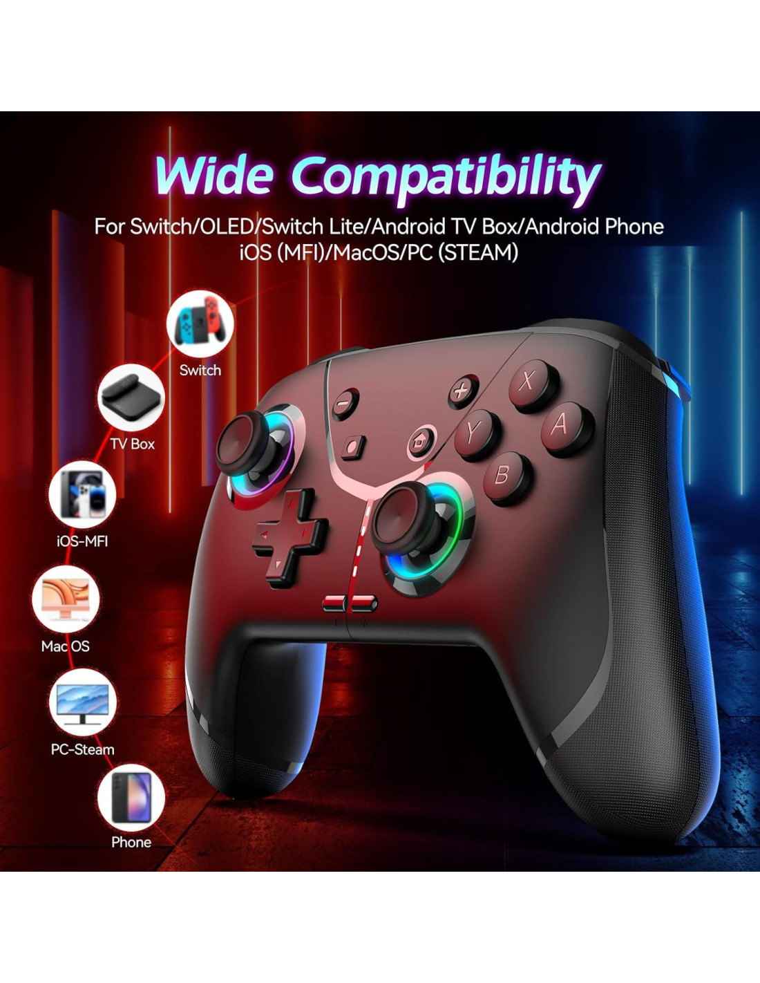 - [Compatibilidad con múltiples plataformas]: Nuestros controladores están diseñados para ser compatibles con una amplia gama de plataformas, y los controladores de switch mejorados no solo son compatibles con Nintendo Switch2/Switch/Lite/OLED, sino también con PC (Windows 7 y superior), iOS y Android (TVs y cajas de TV versión 6.0 o superior).