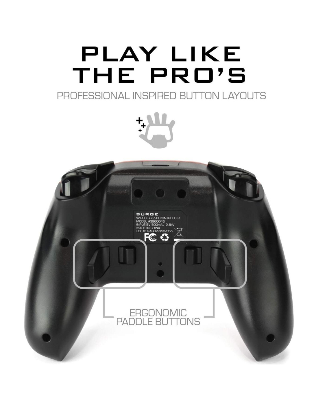 Mejora la jugabilidad con el Controlador Inalámbrico SURGE SwitchPad Pro para el Nintendo Switch. El estilo clásico del controlador y el diseño liviano aseguran comodidad continua durante largas sesiones de juego, mientras que los motores de vibración duales incorporados proporcionan una experiencia de juego inmersiva. Además, el botón Turbo programable te dará una ventaja sobre la competencia al permitirte cambiar cualquier botón de cara o gatillos en el controlador para tener funcionalidad Turbo.