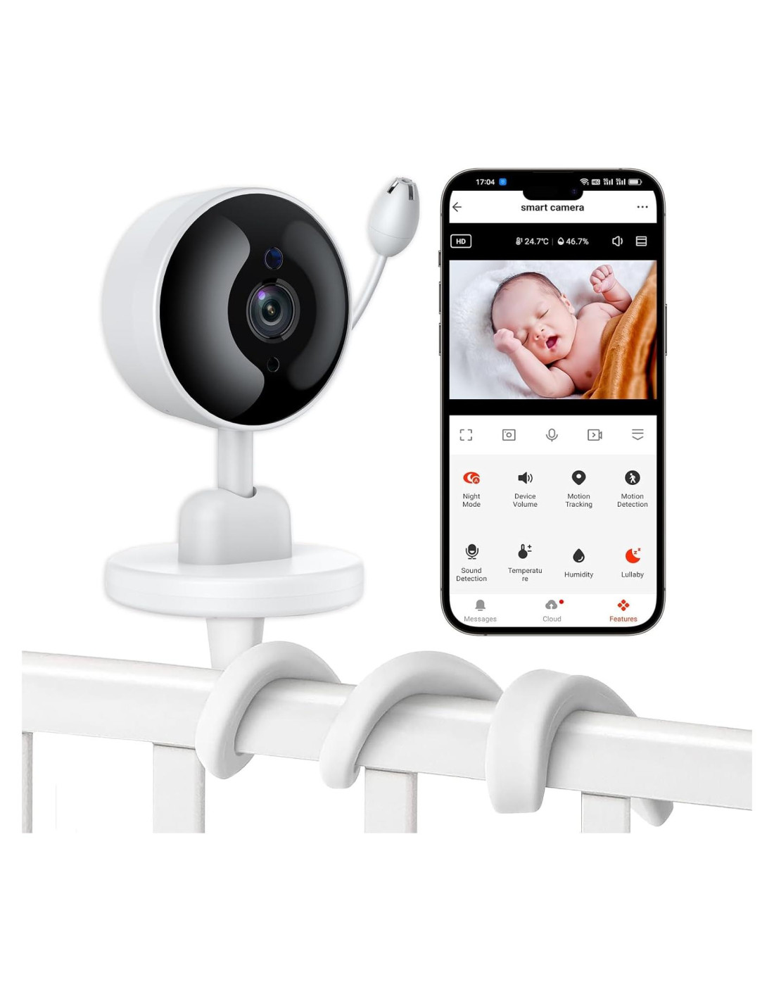 - Monitor de Bebé 2K con Visión Nocturna: Monitor de bebé inteligente equipado con cámara 2K y 6 luces infrarrojas, monitoreo claro a través del teléfono por la noche. Monitor de bebé con soporte de montaje flexible, instalación sin herramientas, y el ángulo se puede rotar 360, 90 hacia arriba y hacia abajo