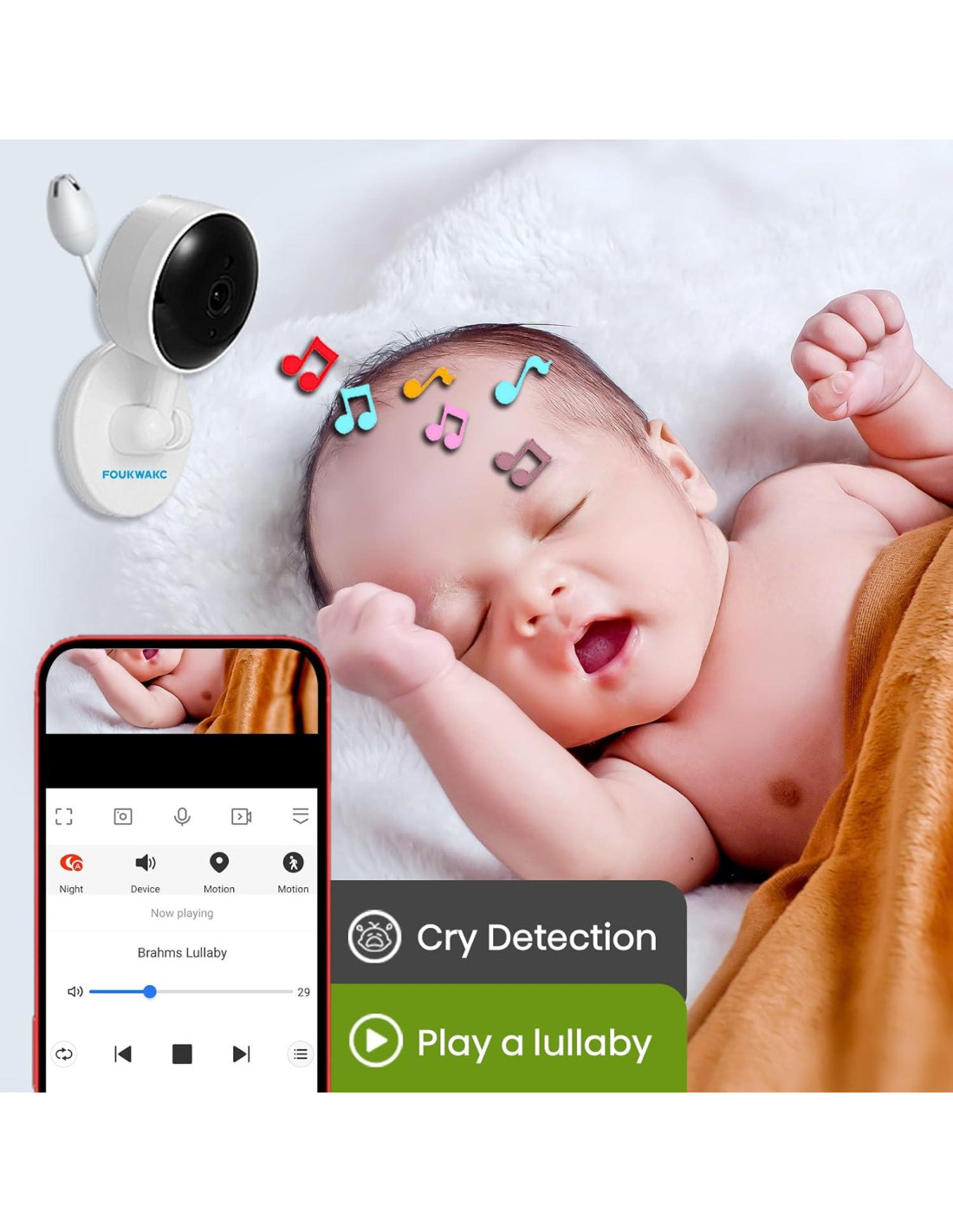 - Audio Bidireccional y 4 Canciones de Cuna: Monitor de bebé con cámara y audio para video y llamadas bidireccionales, con tecnología de cancelación de eco y supresión de ruido. Monitor de bebé WiFi con APP que reproduce canciones de cuna y ajusta el volumen para un ambiente de sueño acogedor para tu bebé