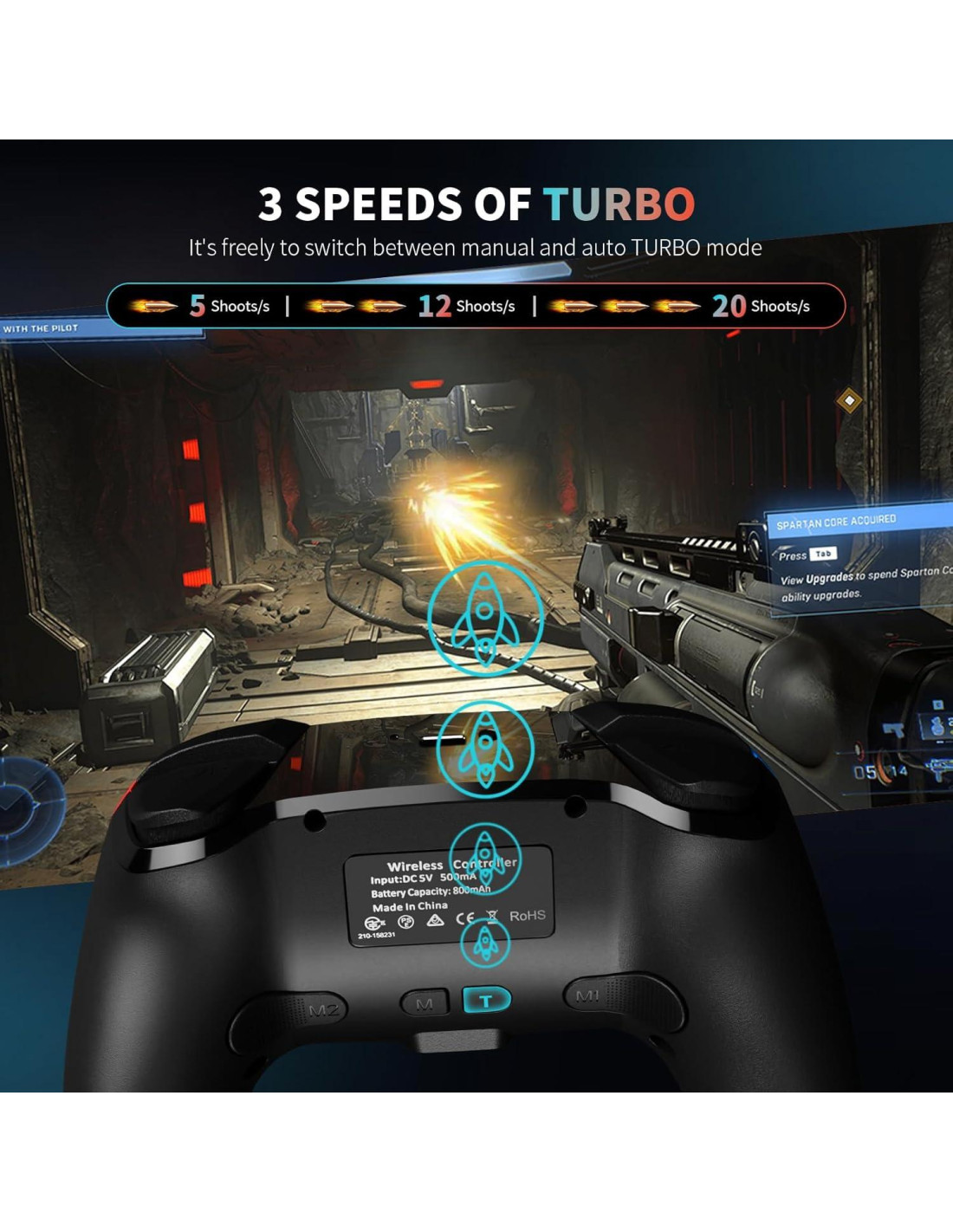 - [Botón Programable y Turbo Burst con 3 Velocidades] Los controladores de switch tienen botones adicionales que simplifican operaciones de habilidades complejas con el botón M1/M2 (M1/M2 = cualquier botón A/B/X/Y/L/ZL/R/ZR/L3/R3/D-pad, hasta 16 botones). 2 modos de programación: Asignación única Asignación múltiple. Soporta modo turbo automático/manual. 3 velocidades de ráfaga ajustables: 5 disparos/s, 12 disparos/s y 20 disparos/s.