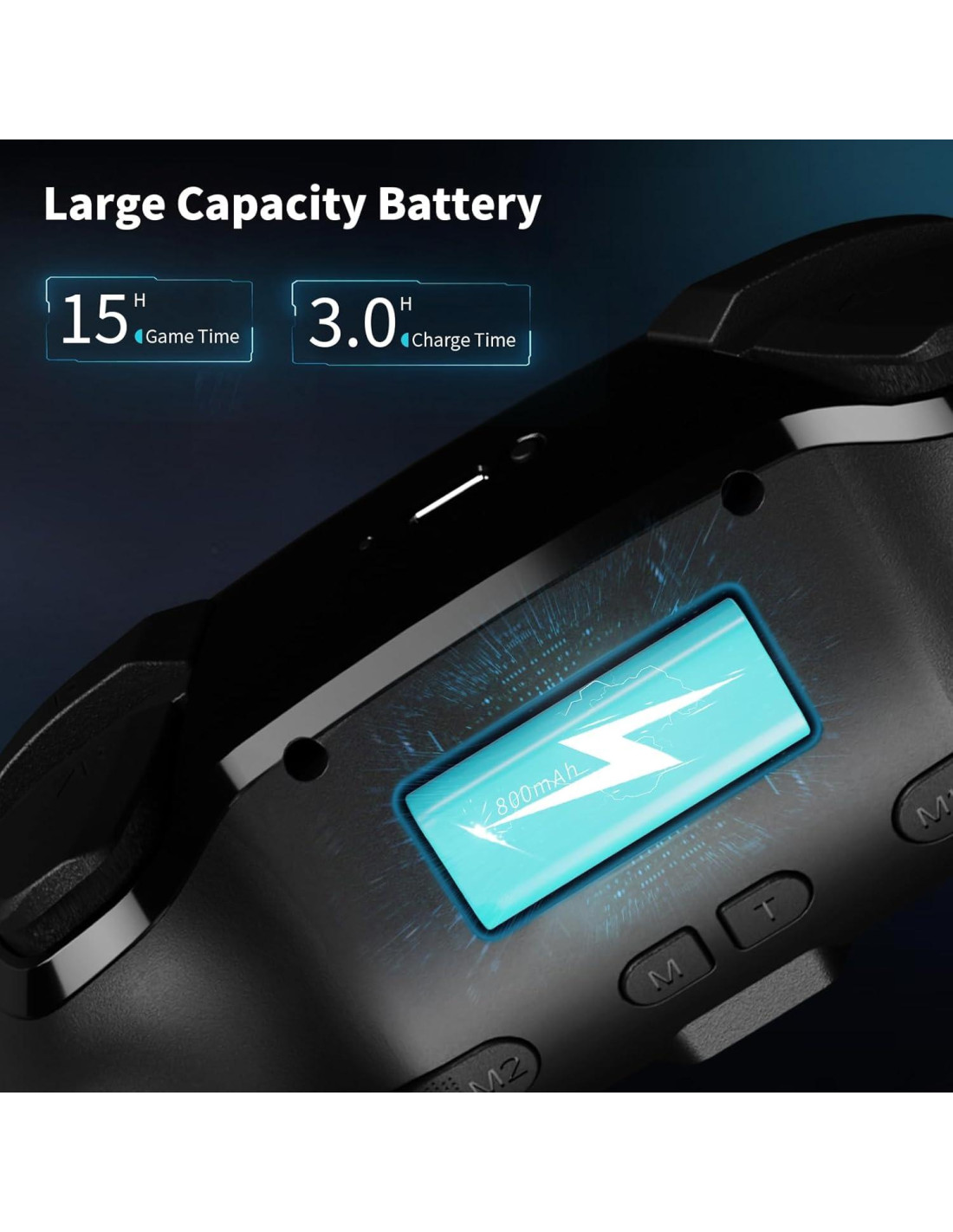 - [Batería Grande de 800 mAh de Larga Duración] La batería de litio de 800 mAh incorporada tarda solo 3-4 horas en cargarse completamente y soporta 12 horas de juego continuo (debido a la función adicional de apagado automático, la batería no se descargará accidentalmente después de 5 minutos de inactividad). Carga rápida, respuesta rápida, mantiene la vida útil de la batería también larga.