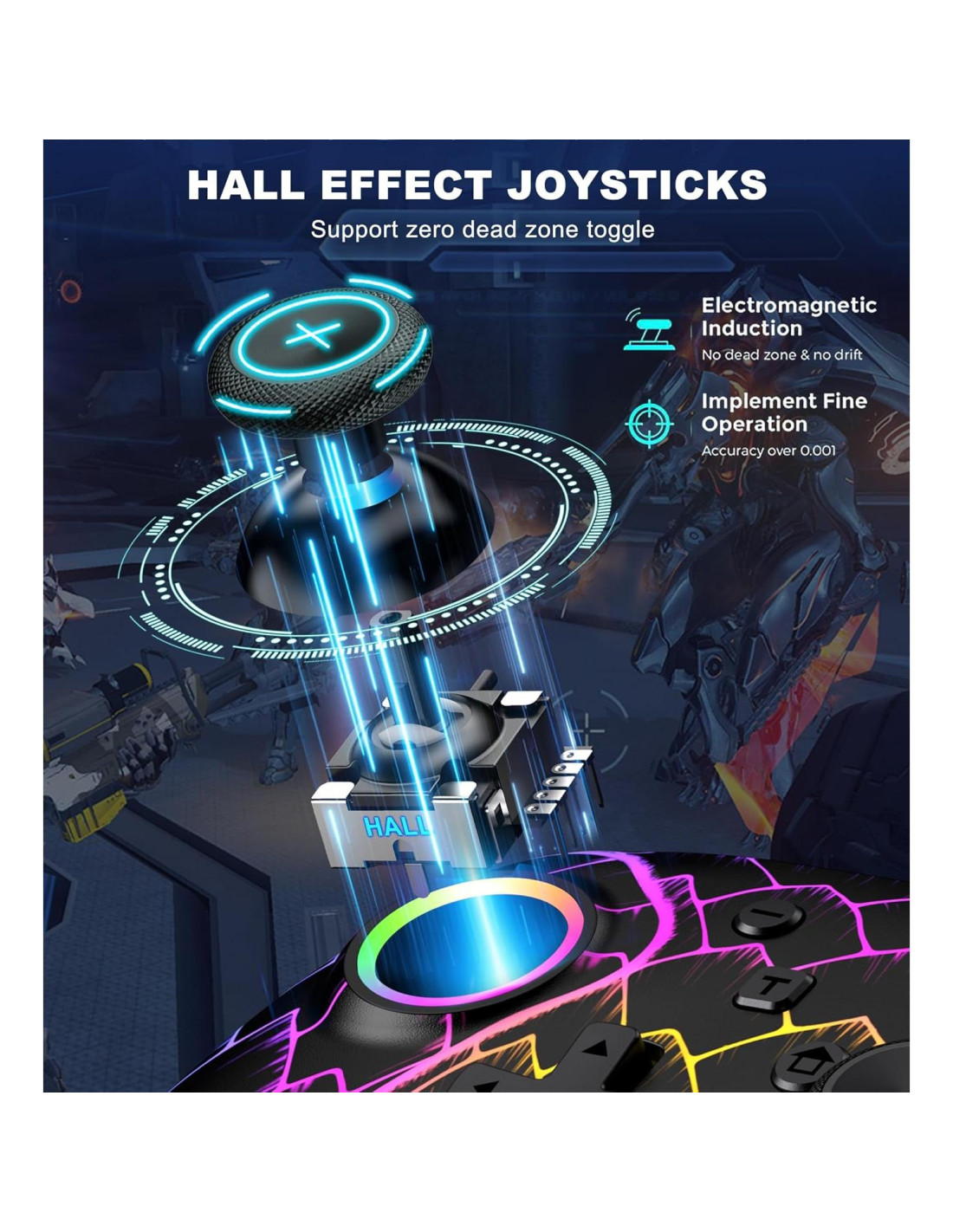 - [Joysticks y Gatillos de Efecto Hall para Juegos de Precisión] Experimenta una precisión y durabilidad inigualables con la tecnología de Efecto Hall. El diseño magnético y sin contacto asegura que no haya deriva de joystick y proporciona un control suave y receptivo tanto para los joysticks como para los gatillos, perfecto para juegos competitivos