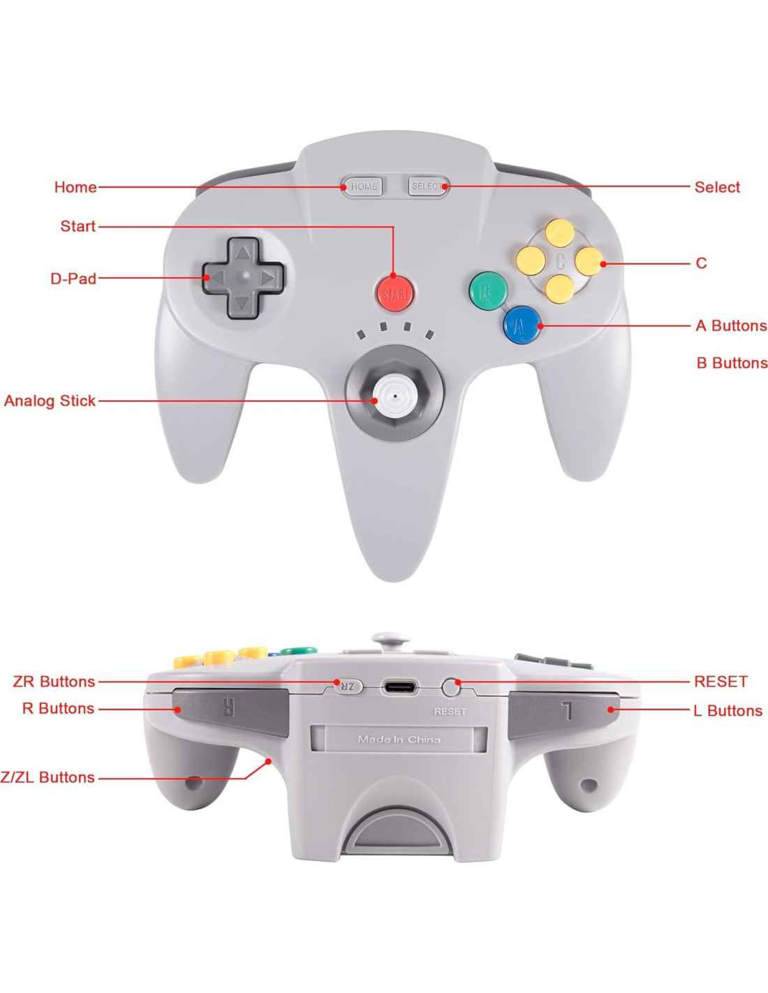 - - [Diseño Clásico] DISEÑO ERGONÓMICO, Estilo clásico N64 con forma de "M", se adapta perfectamente a las palmas, todos los botones y controles hacen que tu mano esté muy cómoda durante largos períodos de juego. Es una gran opción si esperas jugar estos juegos clásicos de N64 en la consola en línea de Switch.