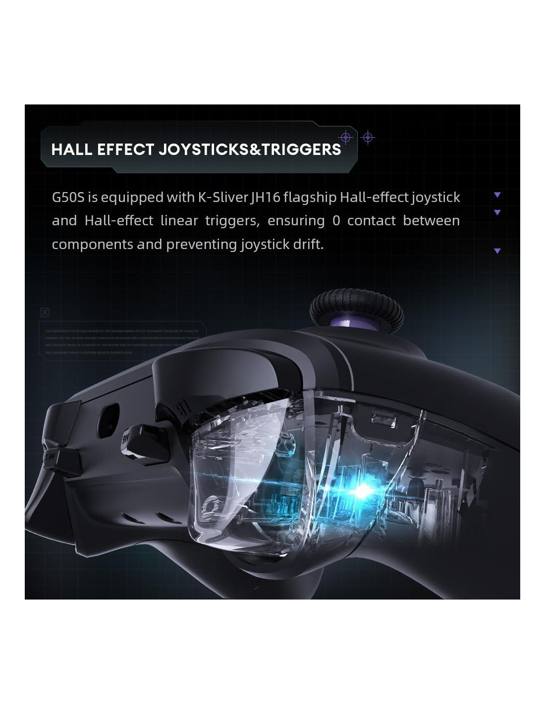 - Joysticks de Efecto Hall: El controlador de juegos Thunderobot G50S cuenta con joysticks de efecto Hall. Los joysticks duraderos proporcionan un deslizamiento anti-drift preciso, brindando a los jugadores un nivel excepcional de control y precisión.