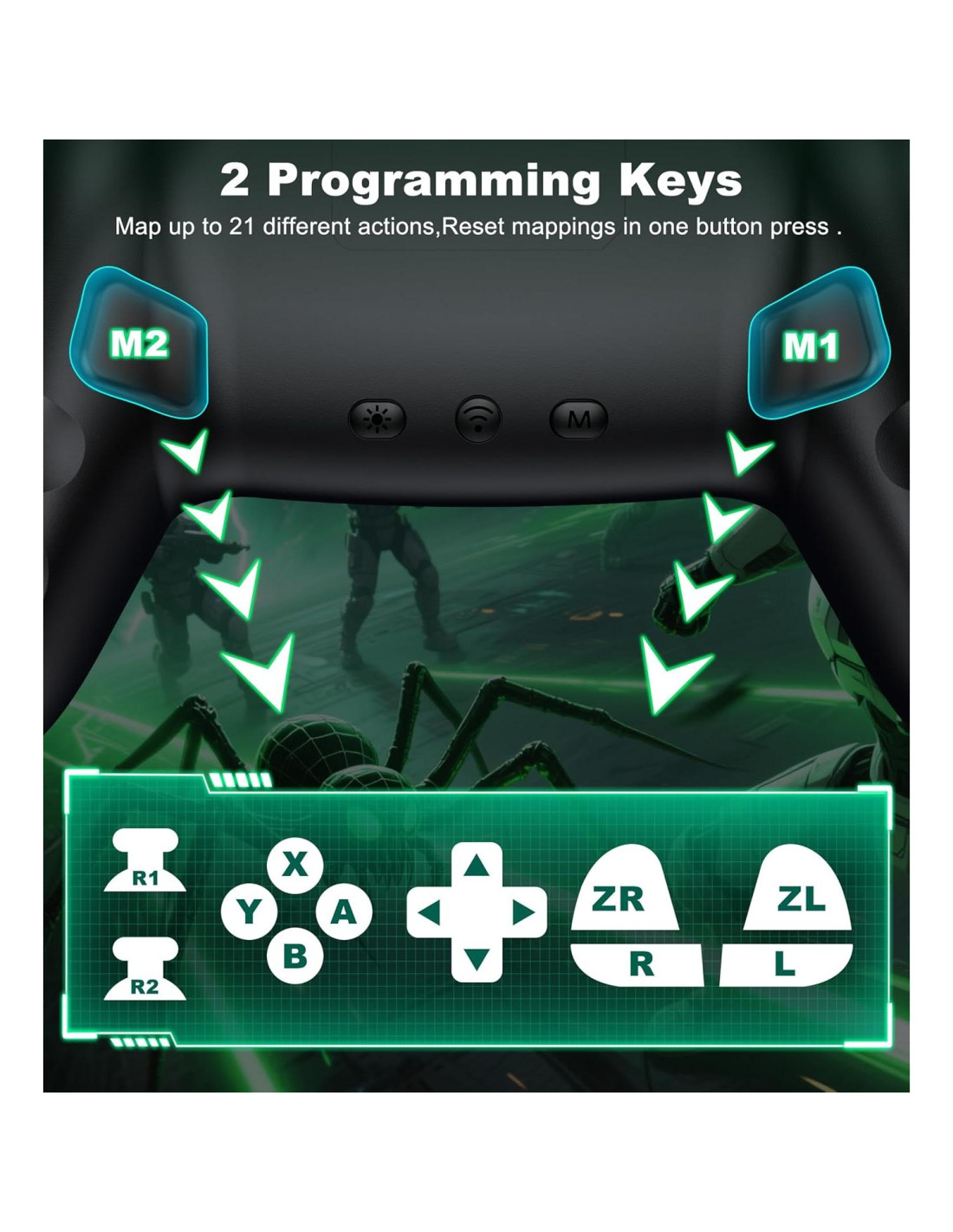 - BOTONES TRASEROS DE 21 ACCIONES: PERSONALIZACIÓN DEL CONTROLADOR PRO DE PC: Mapea 21 comandos por botón trasero (A/B/X/Y/d-pad, etc.) a través de programación M+M1/M2. Borra todos los mapeos instantáneamente con M+"-".
