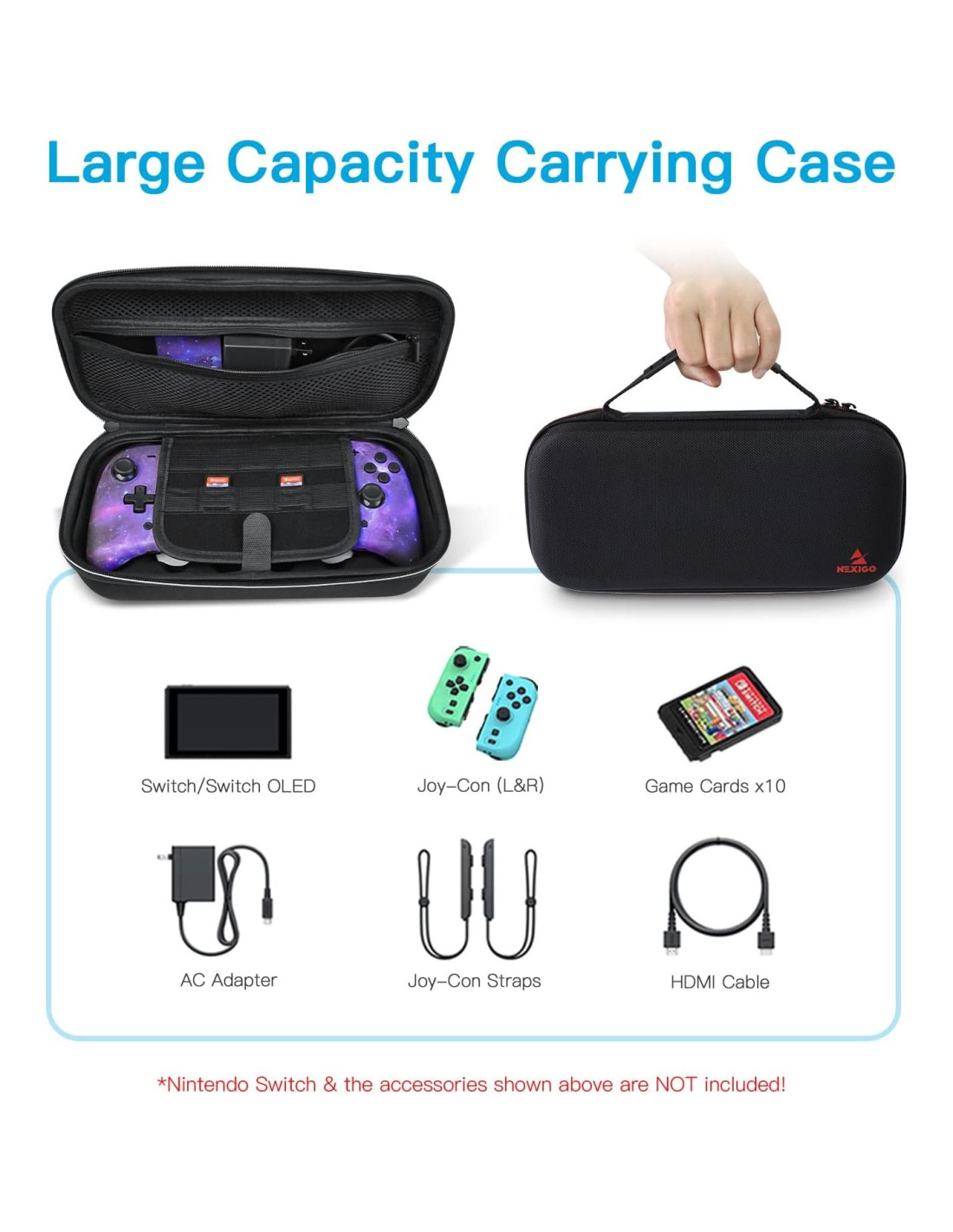 - [Estuche de Gran Capacidad para Switch] Hecho con materiales duraderos, el estuche para controlador de NexiGo tiene una carcasa dura de plástico EVA y un interior suave de microfibra para proteger tu consola Switch de arañazos y caídas de manera efectiva.