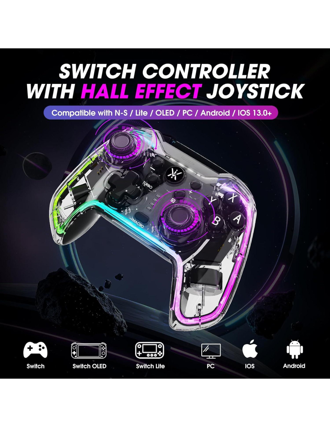 - Compatibilidad Múltiple: El Controlador Pro de Switch con Joysticks de Efecto Hall es compatible con Switch 2/Switch/Lite/OLED/PC/Android/IOS. Experimenta la alegría de múltiples juegos con UN controlador. Nota: compatible con NS 2 solo en modo Bluetooth y por favor nota que recibirás el manual electrónico de nuestra parte.