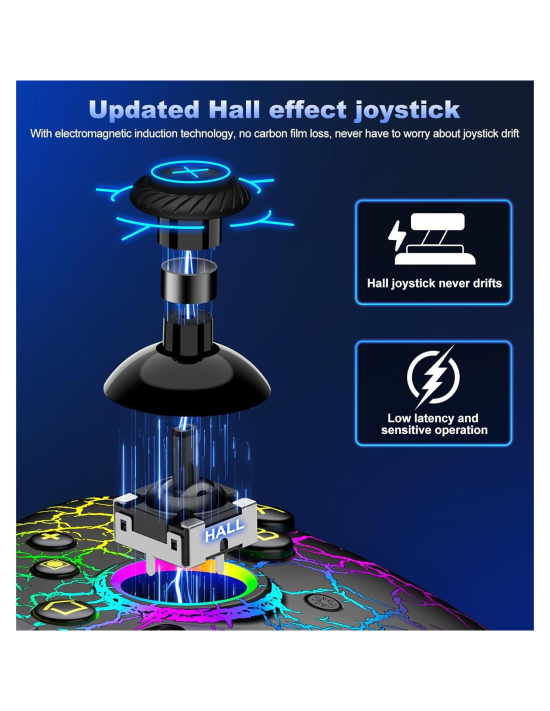 - Controlador de Joystick de Efecto Hall: Este controlador de Switch viene con Joystick de Efecto Hall, la innovadora tecnología de inducción electromagnética permite que tu controlador nunca se desplace, puedes controlar con precisión tu personaje en juegos intensos, extendiendo en gran medida la vida del controlador