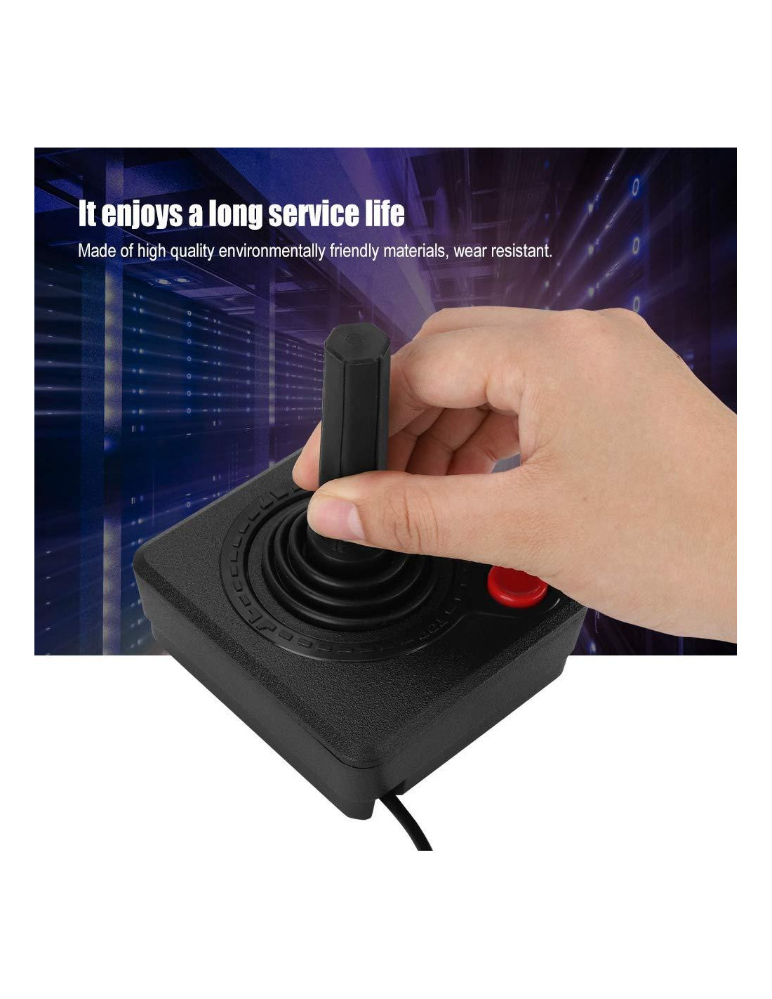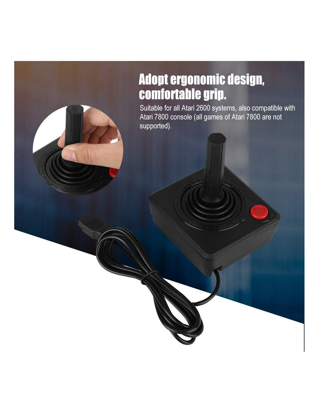 Características : 1. Un controlador de joystick avanzado con un joystick de operación y un joystick de cuatro direcciones. 2. Diseño ergonómico, agarre cómodo. 3. Adecuado para todos los sistemas 2600, también compatible con la consola 7800 (no se admiten todos los juegos de 7800). 4. Hecho de materiales ecológicos de alta calidad, resistente al desgaste. 5. Disfruta de una larga vida útil. Especificación : Material: ABS Modelo: 7800 Tipo de interfaz: 9pin Peso del producto: aproximadamente 200g (0,44 lbs) Tamaño: aproximadamente 9.6*8.5*11.6cm (3.78*3.35*4.57in) Lista del paquete : 1 * Joystick