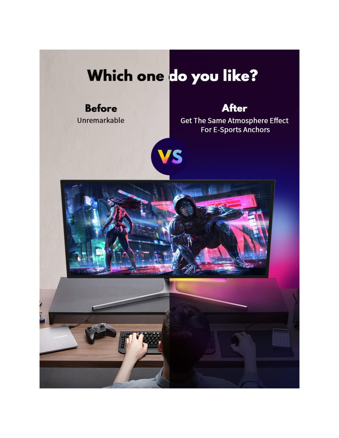 - Segura y Eficiente Energéticamente- LED significa baja energía/calor. La luz para juegos tiene un bonito exterior de aluminio negro y es delgada pero resistente. La barra de luz con carcasa exterior de aluminio negro tiene buena disipación de calor. Agregará un bonito toque a tu área de juegos. Fácil de instalar, agradable y brillante, y muchas colores para elegir!