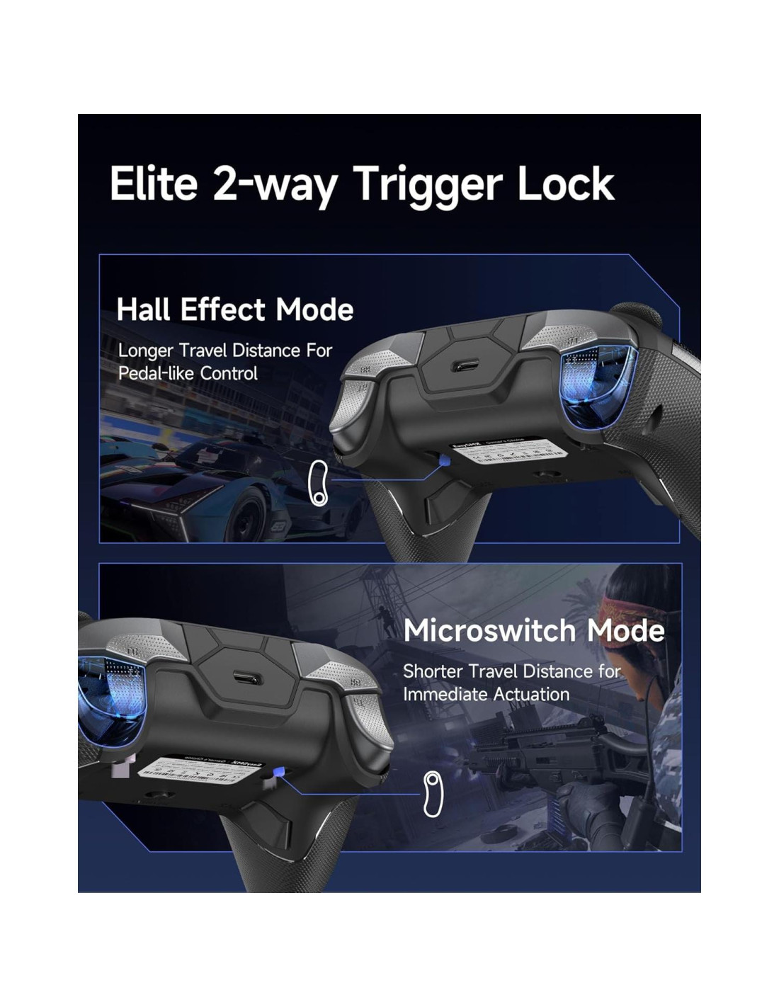 - [Gatillos de Doble Modo para Todos los Géneros] Cambia entre gatillos lineales Hall para carreras/disparos y gatillos táctiles de microinterruptor para juegos de acción/lucha. Entrada rápida para cualquier estilo de juego.