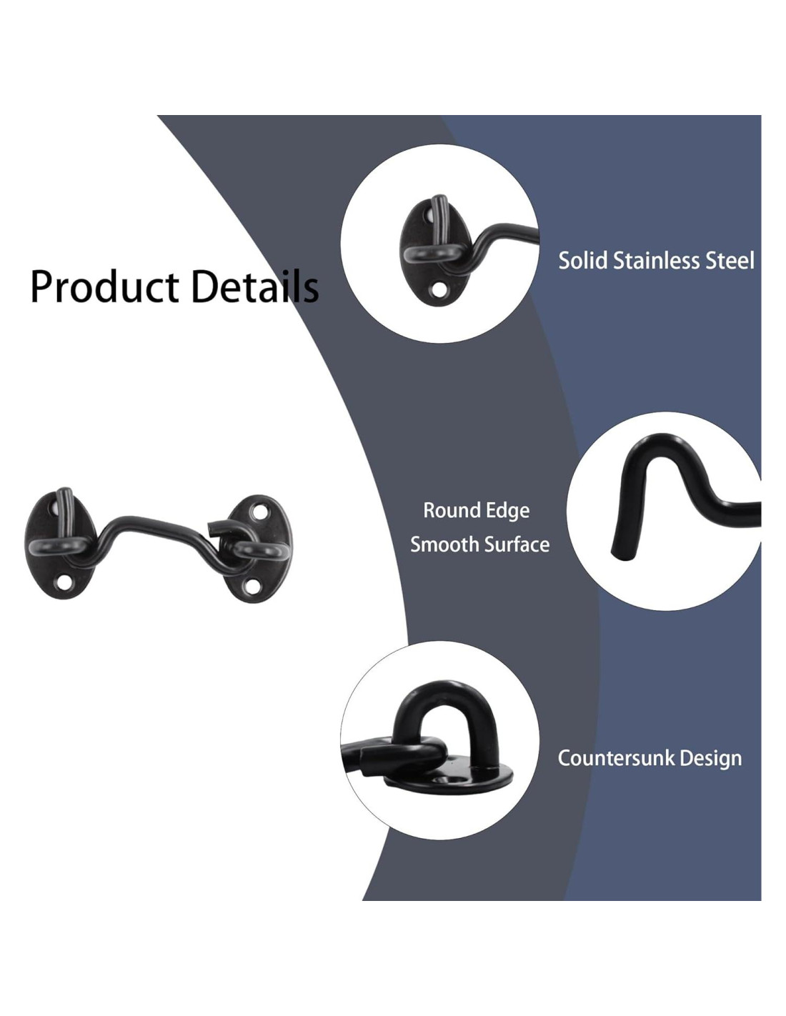 - Paquete Incluido: Recibirás 4 PCS 3 Pulgadas Gancho y Ojo Pestillo. Tamaño del Gancho: Longitud 3 pulgadas/75 mm. Diámetro del Cuerpo Principal del Gancho: 0.24 pulgadas/6 mm.