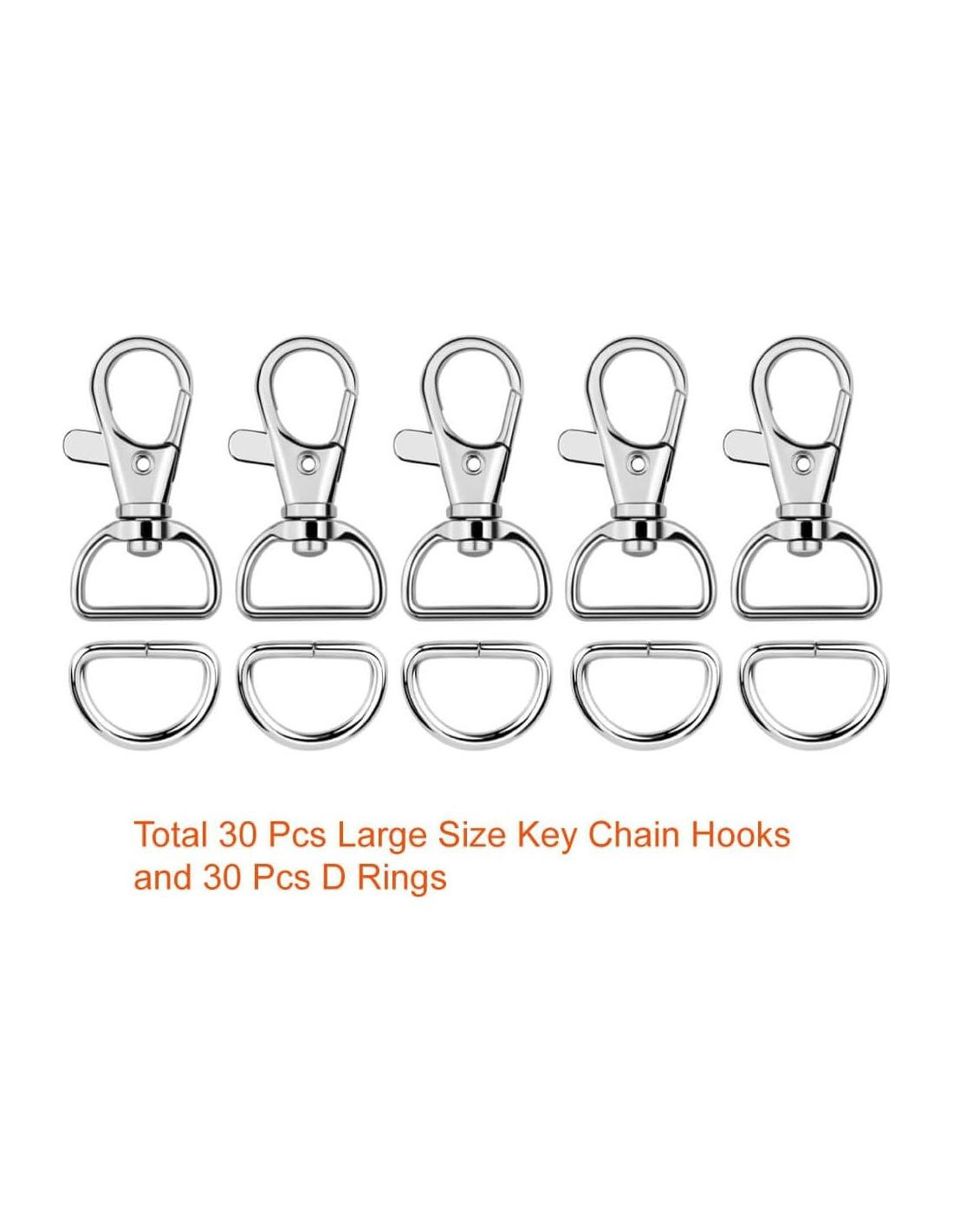 Característica del Producto: Cantidad: 60 piezas Color: Plateado Material: Aleación (de alta resistencia) Tamaño: - Gancho Giratorio: 1-5/8" (4.1 cm) de largo y 1" (25 mm) de ancho interior. - Anillo en D: 1" (25 mm) de ancho interior y 3 mm de grosor. Paquete Incluye: - 30 piezas ganchos giratorios - 30 piezas anillos en D