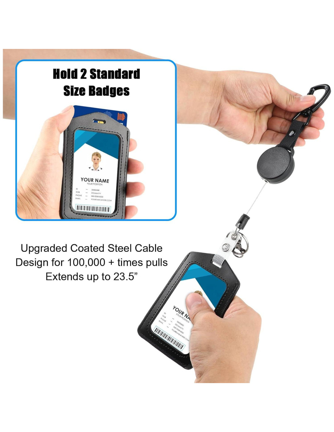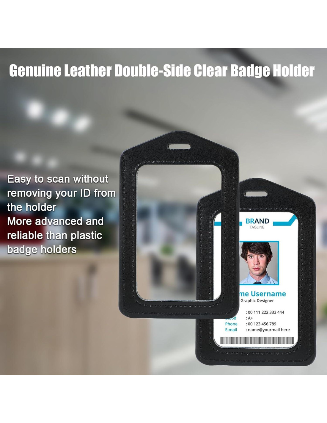 - Soporte de tarjeta de llaves de cuero genuino: Mejora de plástico con nuestro soporte de identificación de cuero genuino, que ofrece una construcción suave y resistente para todas tus necesidades de insignias. La ranura de tarjeta clara vertical de doble cara te permite mostrar fácilmente 2 insignias sin retirarlas para escanear.
