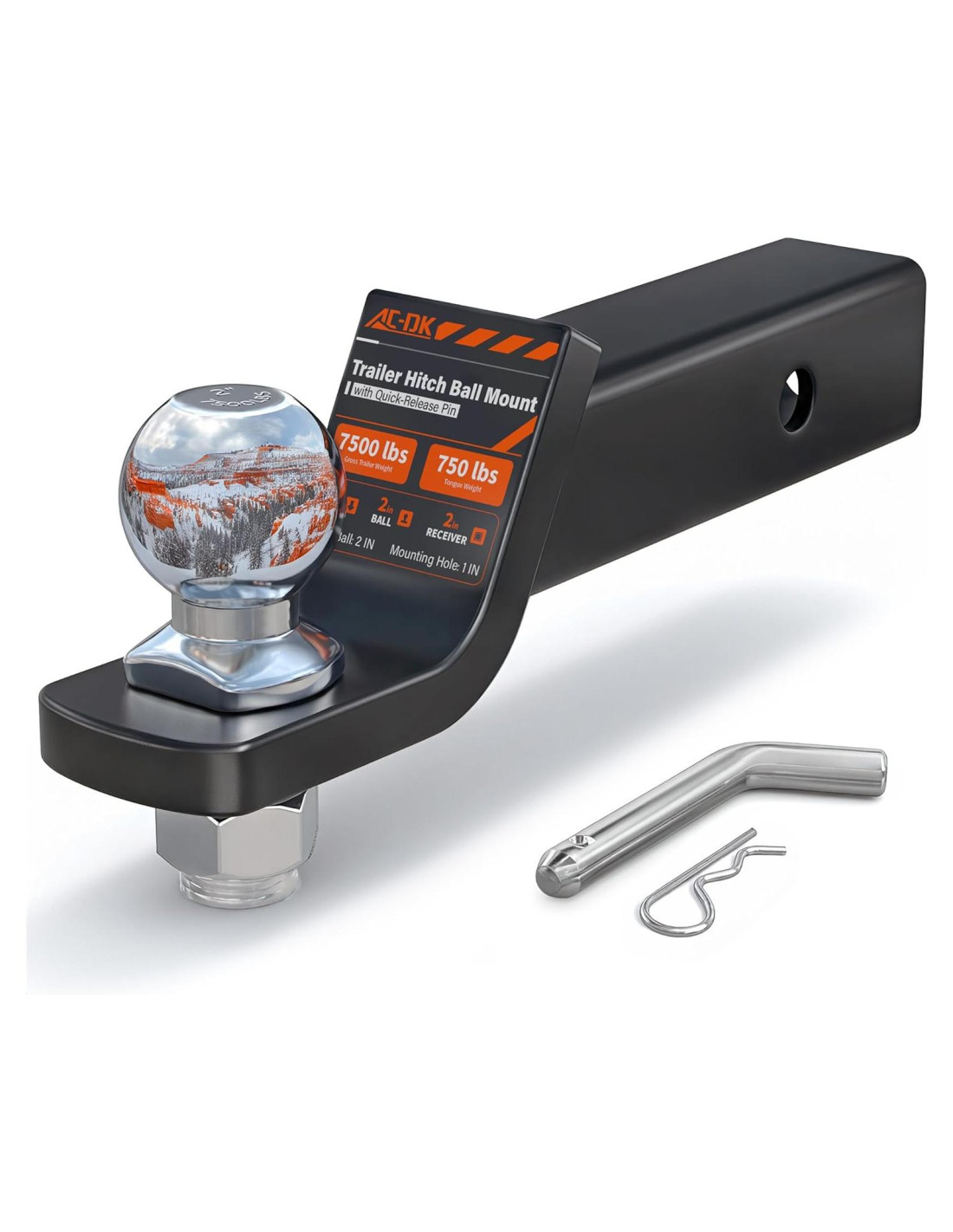 - Montaje de bola de enganche de remolque de alta resistencia - Calificado para remolcar hasta 7,500 lbs (3,402 kg) GTW y 750 lbs (340 kg) de peso en la lengua, este duradero montaje de enganche es ideal para camiones, SUV, casas rodantes, remolques, campers, ATVs/UTVs y barcos. Diseñado para adaptarse a todos los vehículos equipados con un receptor de enganche estándar de 2 pulgadas.