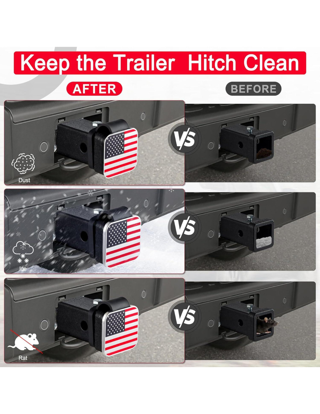 - Alta Calidad La cubierta de enganche de remolque está hecha de goma suave de alta calidad y metal de aluminio, la goma de alta calidad puede soportar condiciones climáticas exteriores severas y proteger mejor el receptor de enganche.