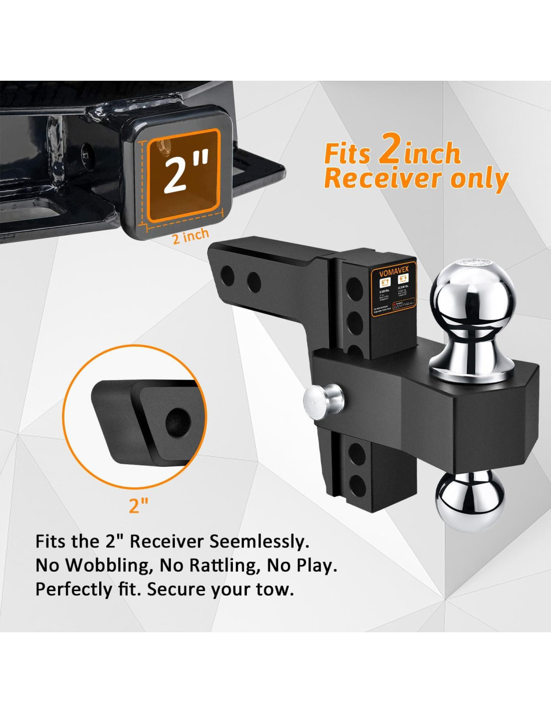 - [SE AJUSTA SOLO A RECEPTOR DE 2", COMPATIBILIDAD VERSÁTIL] - El Enganche de Remolque Ajustable Vomavex se ajusta sin esfuerzo a una amplia gama de conectores, incluidos camiones, RVS, remolques de granja, remolques de carga, remolques de ganado, casas rodantes e incluso vehículos todoterreno como ATVS y motocicletas. Así que, ya sea que esté remolcando un pequeño remolque de utilidad o una casa rodante de servicio pesado, este enganche nunca le fallará.