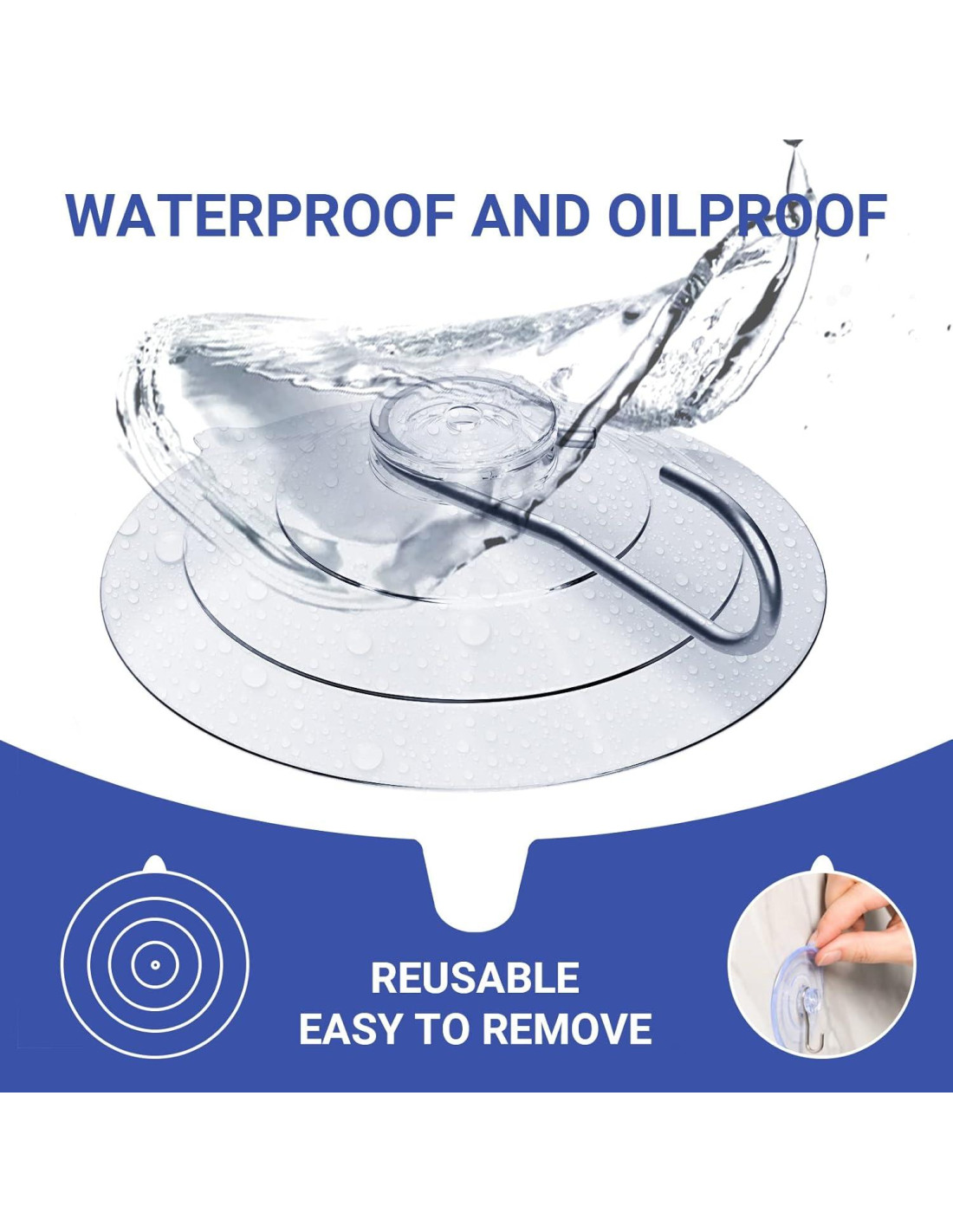 - Copas de Succión Impermeables y a Prueba de Aceite: Estos ganchos de copa de succión de alta resistencia son impermeables al agua y al aceite, asegurando que el agarre de los ganchos de succión para la pared de la ducha se mantenga fuerte incluso cuando están mojados o grasientos. La humedad y la grasa no debilitarán el potente sello de succión. Para un máximo poder de sujeción, asegúrate de que la superficie de montaje esté al menos a 4.4C antes de la aplicación. ¡Enfrenta áreas desordenadas como cocinas, baños o garajes con confianza!