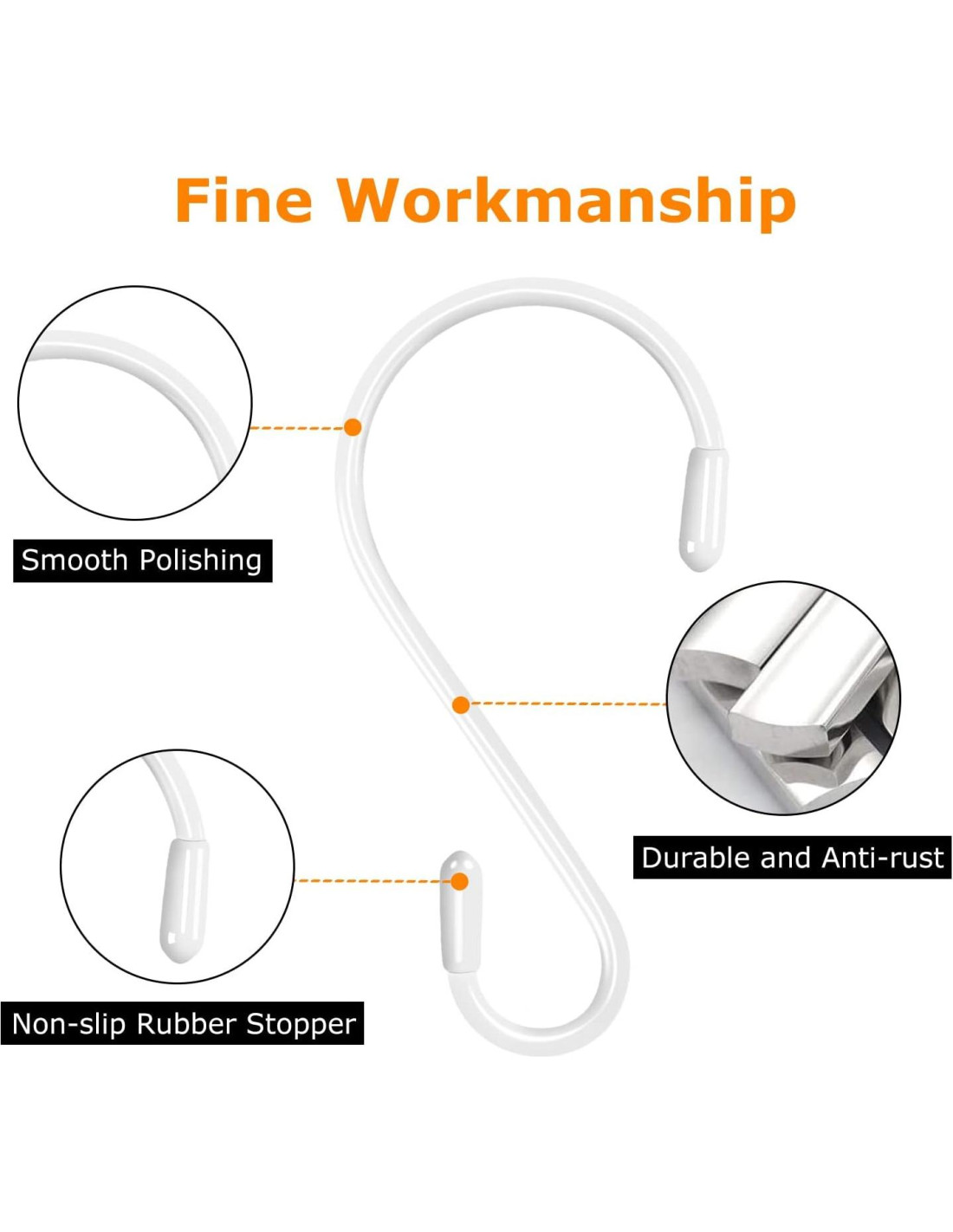 Descripción: Estos ganchos en S son adecuados para colgar utensilios de cocina, herramientas, toallas, cortinas de ducha, plantas. También puedes usar estos ganchos en S antideslizantes para colgar cestas, campanas, joyería y otros artículos. Muy prácticos y ahorran espacio.