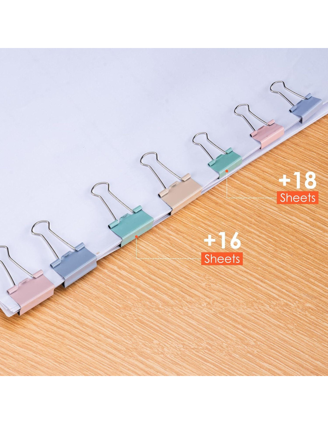 - Conjunto de Clips de Papel y Clips de Carpeta: 284 Pcs, clips de carpeta coloridos de tamaños asortidos 16 Pcs clips de carpeta medianos (25mm/1 pulgada) y 18 Pcs clips de carpeta pequeños (19mm/0.75 pulgadas). tamaños asortidos de clips de papel coloridos 100 Pcs clips de papel pequeños (28mm/1.1 pulgadas), 100 Pcs clips de papel medianos (33mm/1.3 pulgadas), y 50 Pcs clips de papel grandes (50mm/2 pulgadas)