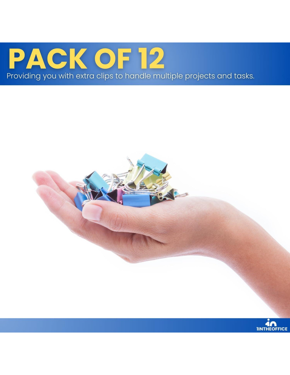 - clips de carpeta grandes, Colores surtidos: verde, rojo, azul, blanco y mostaza