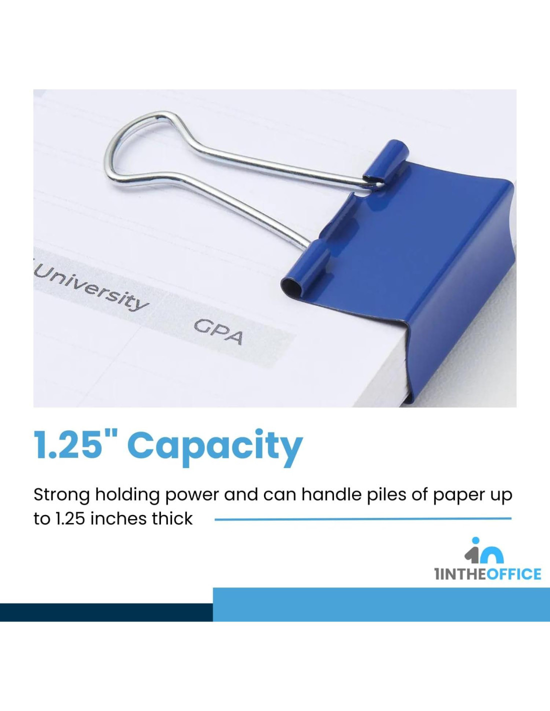 - Los clips de carpeta medianos con capacidad de 5/8" (1.59 cm) son ideales para mayores cantidades de papel, y la forma triangular ofrece una resistencia superior.