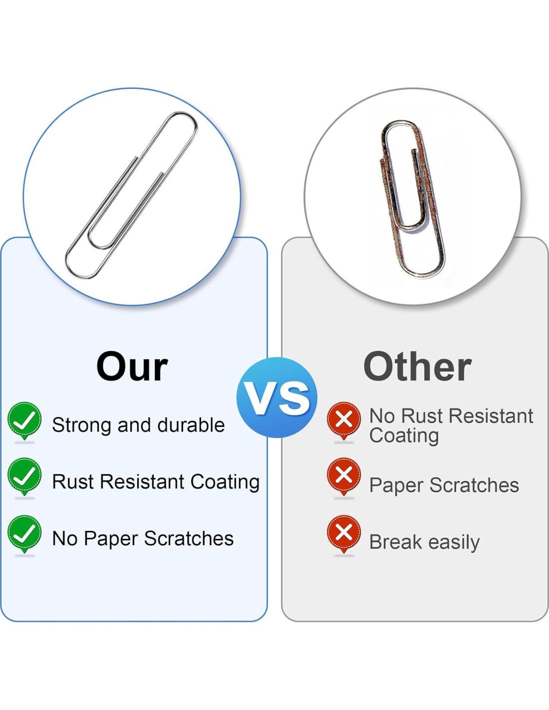 - ALTA CALIDAD: Fabricados con metal superior, estos Clips de Papel Grandes cuentan con una superficie suave e impresionante durabilidad, previniendo la oxidación y asegurando un agarre seguro y antideslizante sin rasgar el papel. Se incluyen 700 Pcs de Clips de Papel plateados de 1.3 pulgadas (33 mm), tendrás más que suficiente para todas tus necesidades.
