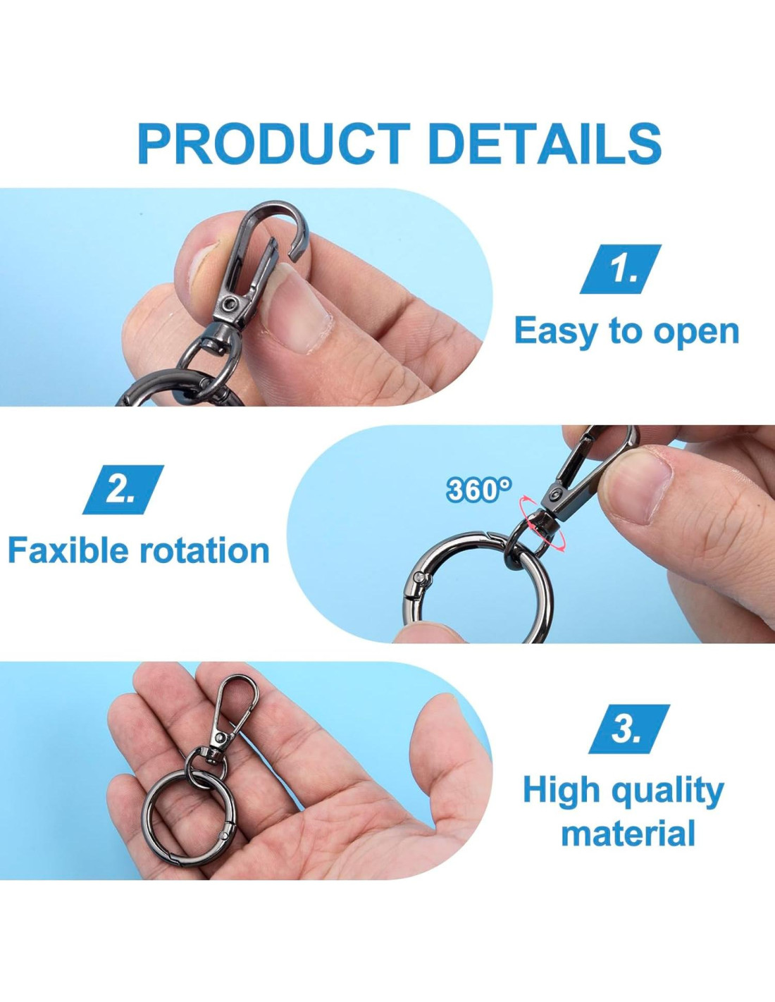 - Clips de Anillos de Llave con Diseño de Rotación - El clip de cierre giratorio tiene rotación de 360 grados, conveniente para su uso