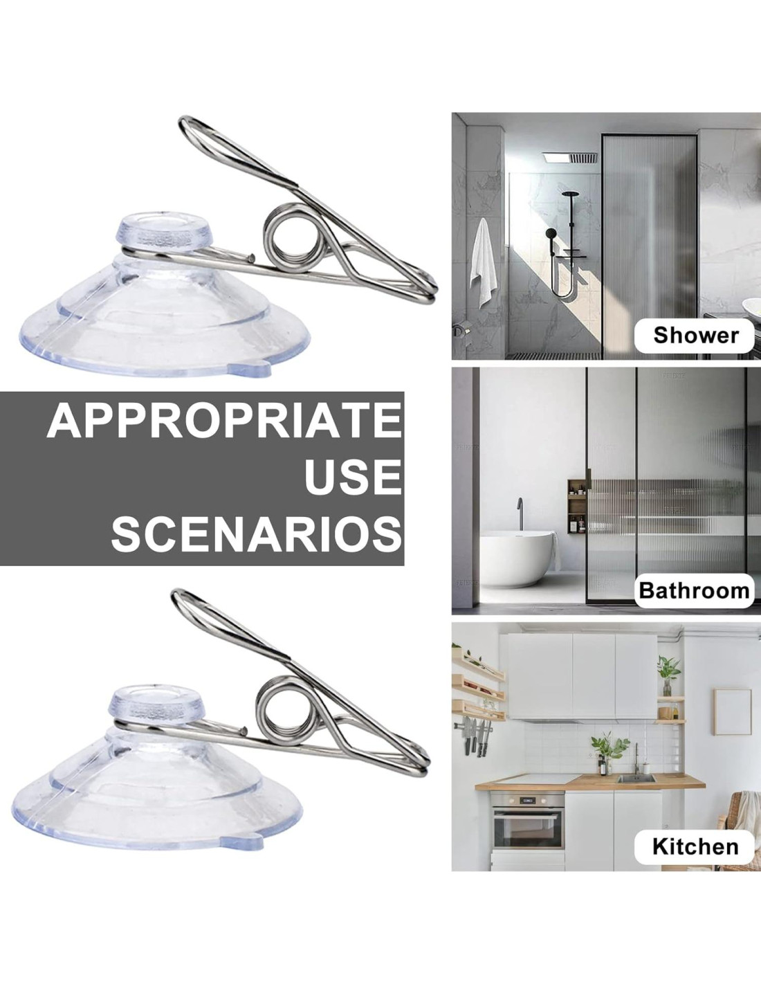 - Uso Diverso: Las ventosas de ventana con clips son portátiles y compactas, pero lo suficientemente fuertes como para soportar el peso de utensilios, herramientas, coronas o decoraciones en la vida diaria. Adecuadas para cocina, baño, lavandería y sala de manualidades, etc.