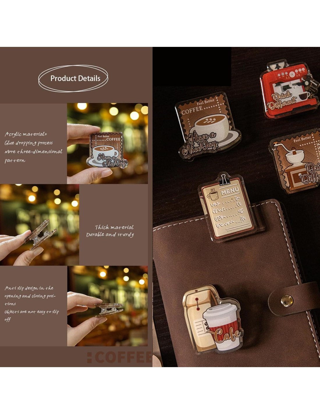 - * Tema de Café - El paquete contiene 2PCS de clip para álbum de papel con diseño de café. Vivid y creativo.