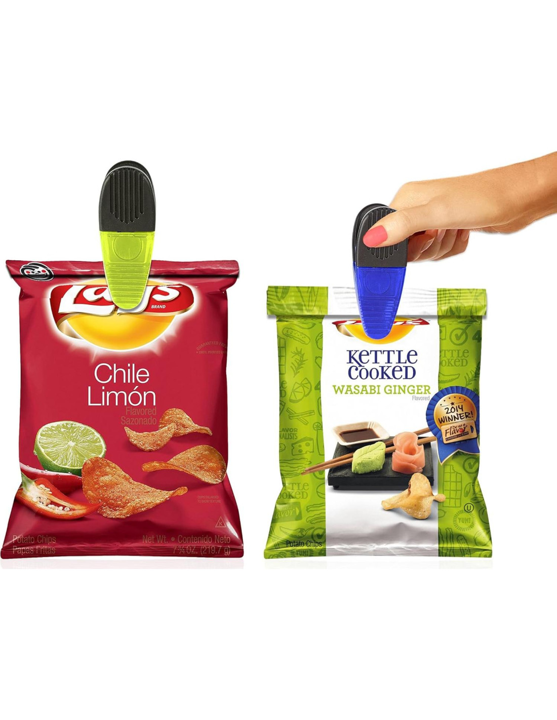 - ¡Perfecto para mantener la comida fresca! Cuando no hayas terminado con tus papas fritas, galletas y más, utiliza nuestros clips de agarre ancho para sellar la frescura por más tiempo.