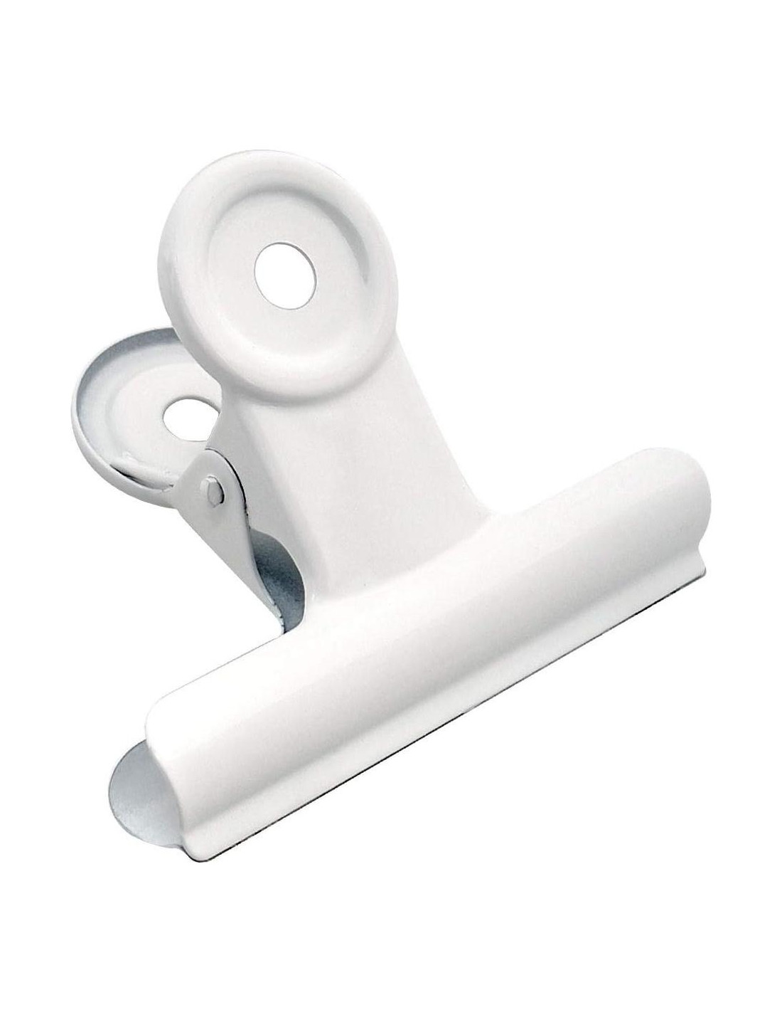 - Los clips de bisagra blancos incorporan un pequeño agujero en las manijas, lo que te facilitará colgar el clip en paredes, puertas, carteles y más