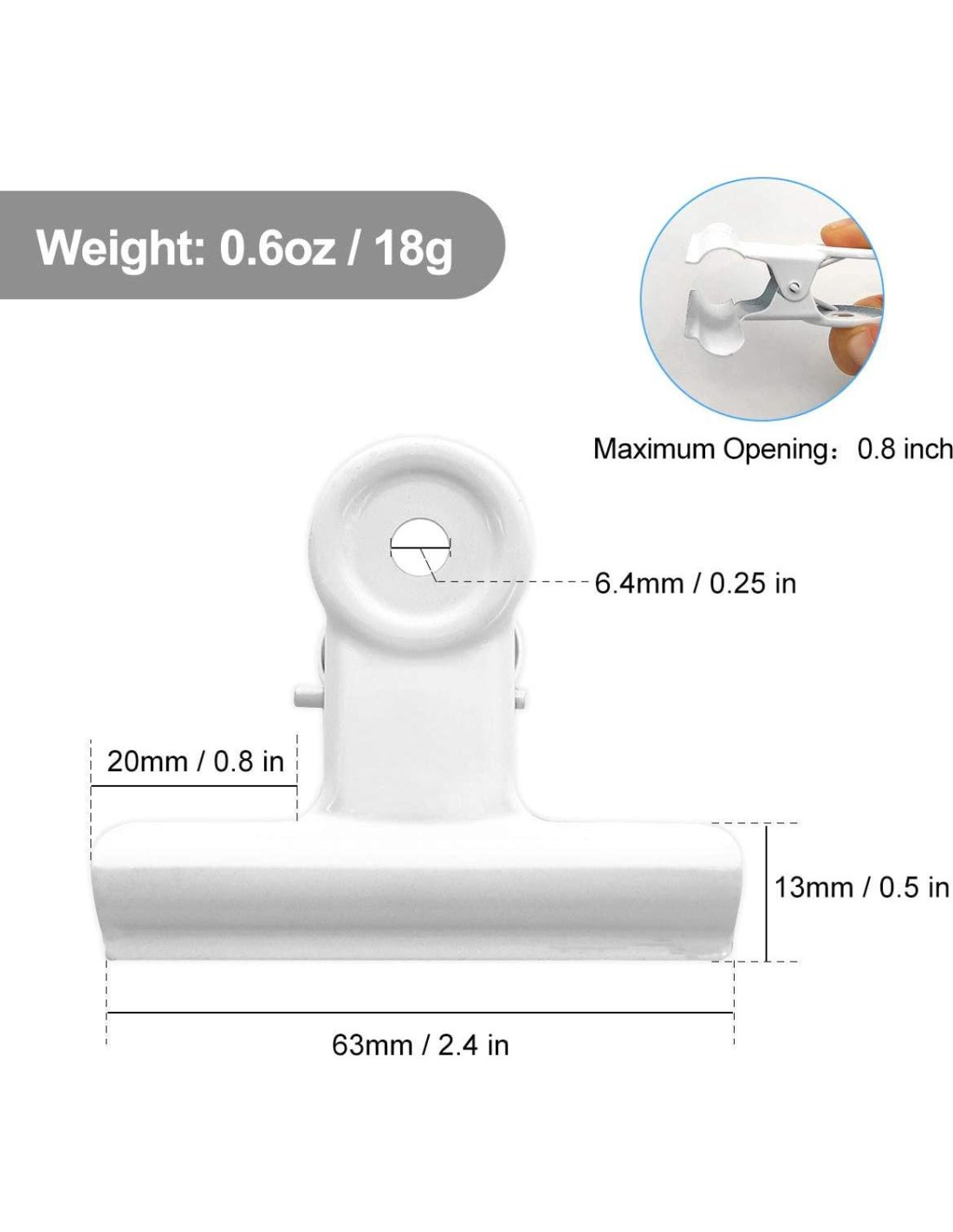 - Número de modelo del artículo: BP-RouncClips-63MM-White