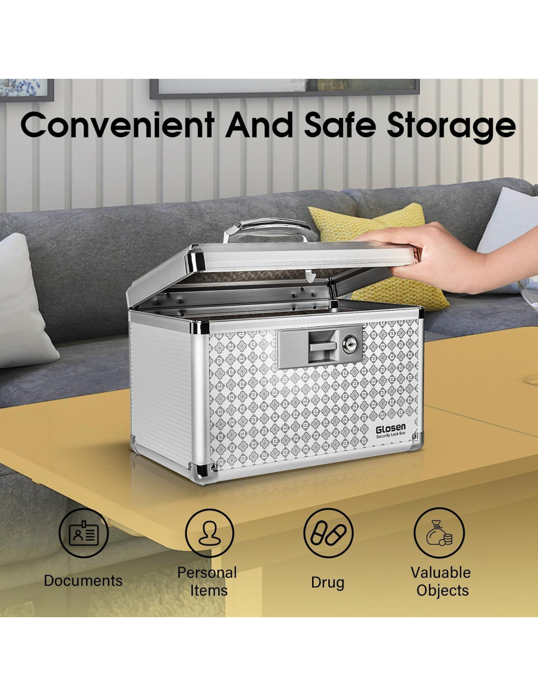 - GRAN CAPACIDAD: Tamaño mediano 30.48 x 19.49 x 19.99 cm, Plata. Tamaño adecuado y mucho espacio para botellas de medicamentos y pastillas diarias. Almacena cosas y dinero. Todo se mantendrá organizado utilizando esta caja de seguridad con llave