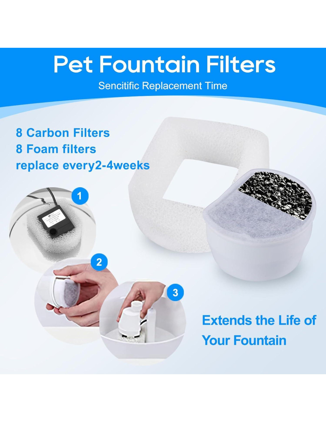 - Gran Paquete: Obtendrás 4 piezas de filtros de carbón para fuente de gatos y 4 piezas de filtros de pre-esponja de espuma - Filtro de fuente para mascotas con mejor efectividad de filtración, proporcionando mejor calidad de agua. Se recomienda cambiar el filtro de carbón cada 2 a 4 semanas (dependiendo del uso).