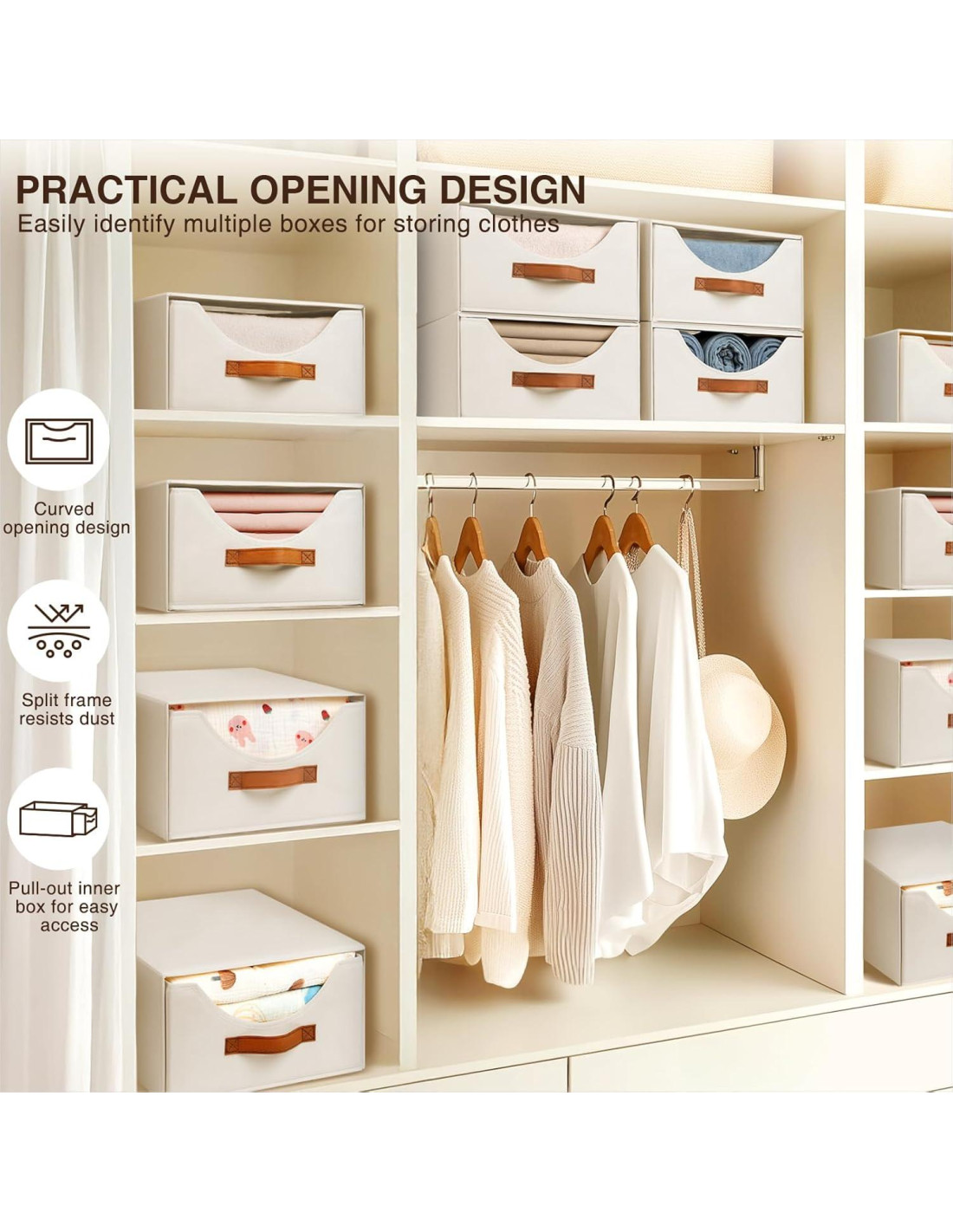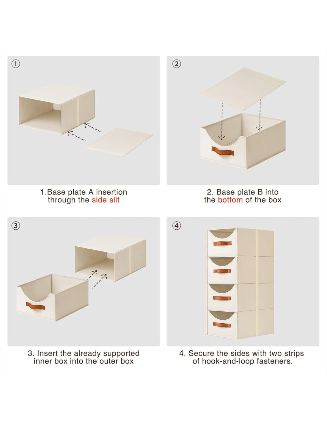 - [Cajones Apilables Estables] Con paneles reforzados y cierres de cinta mágica en los lados, estos cajones de almacenamiento apilables se mantienen alineados de manera segura. Ya sea apilados 2 o 4 de alto, mantienen su forma y función como unidades duraderas de organizador de cajones para ropa