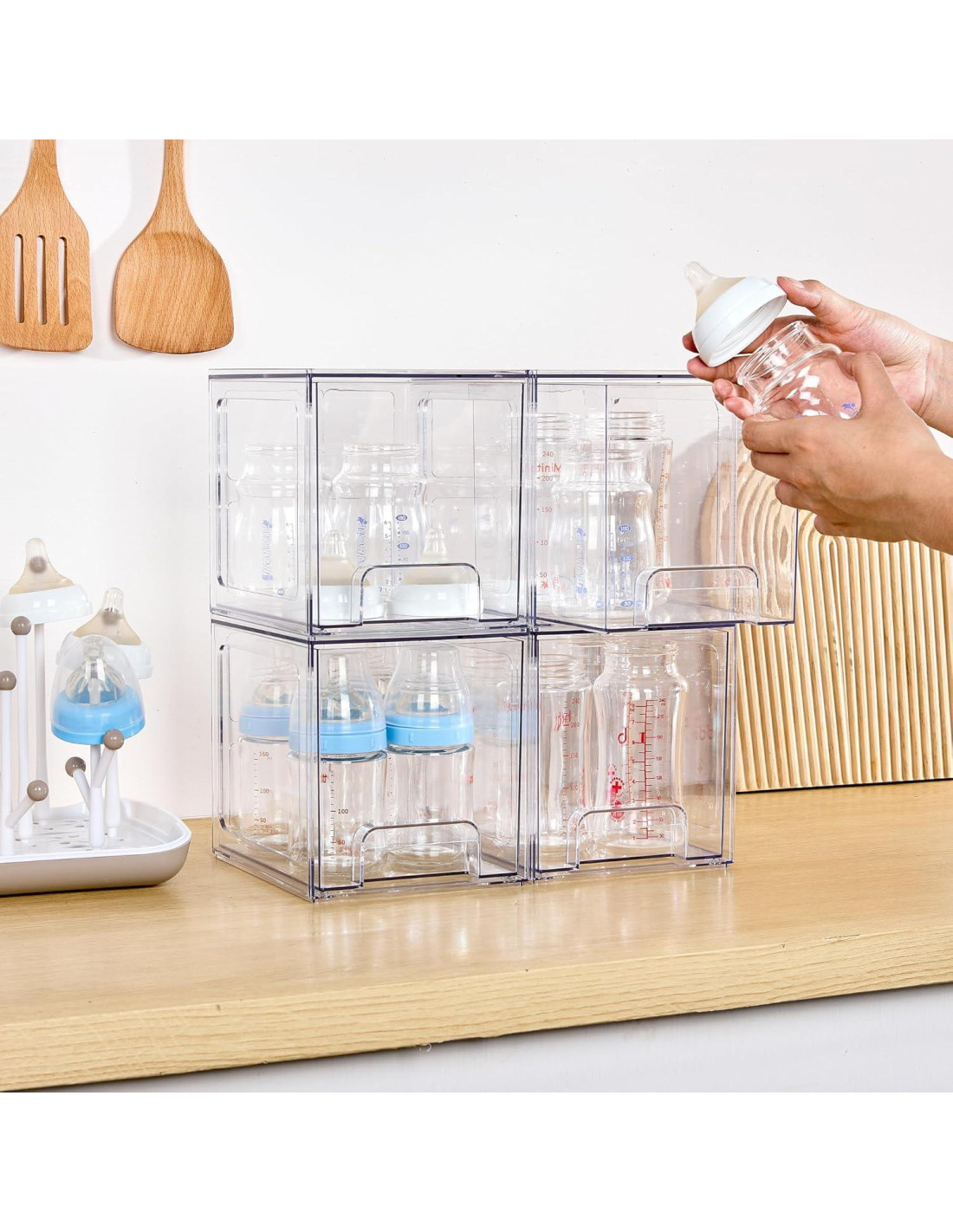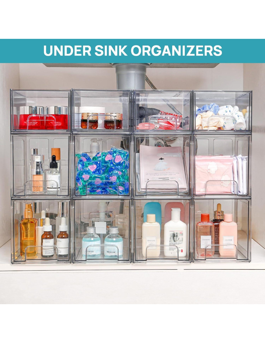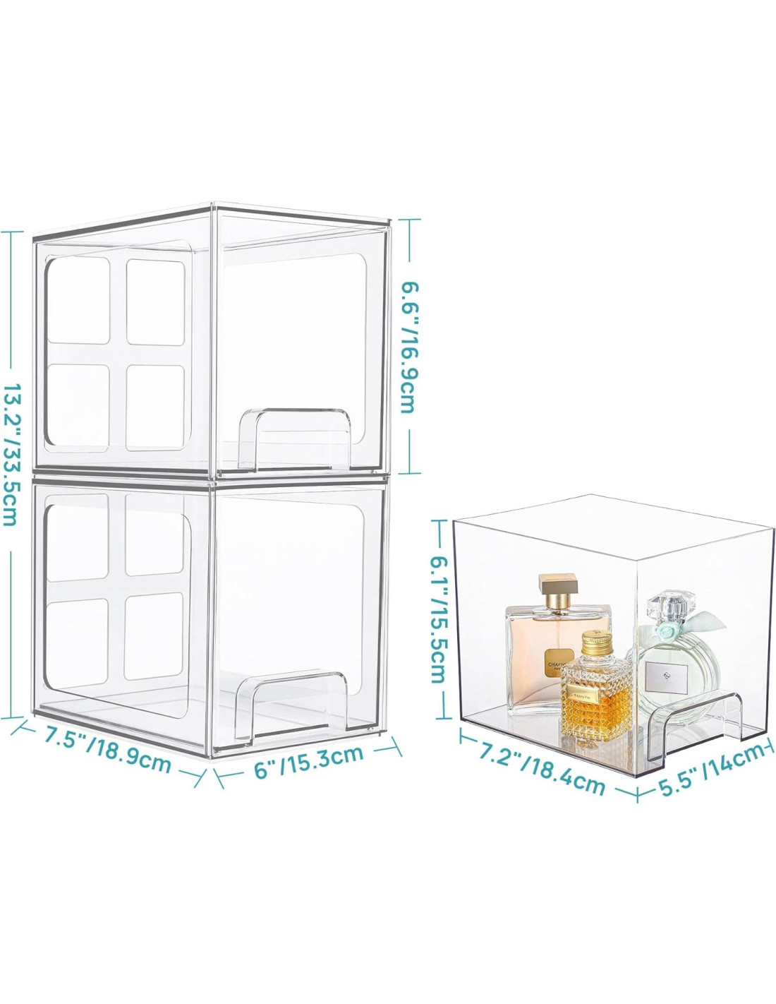 - [Diseño Apilable] Viene con 4 organizadores de cajones, cada organizador mide 7.5"D x 6"W x 6.6"H (19,05 cm x 15,24 cm x 16,76 cm). Los contenedores de almacenamiento son apilables, el almacenamiento vertical ahorrará mucho espacio. Perfecto para organizar esponjas de platos, cápsulas de lavavajillas, biberones, almacenamiento de tocador y baño como cremas faciales, lociones corporales