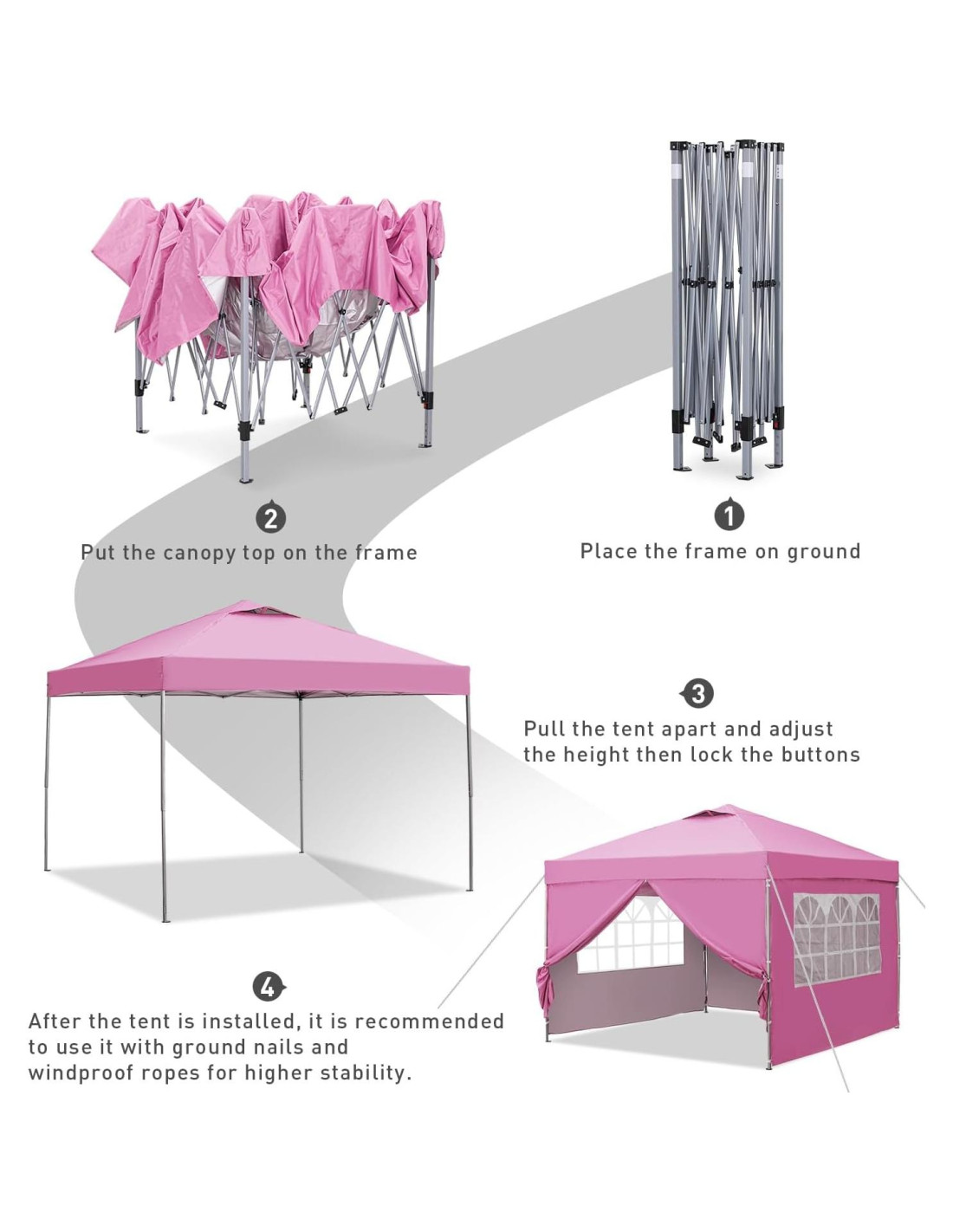 - 3 Alturas Ajustables Esta carpa plegable tiene 3 alturas ajustables para elegir y adaptarse a diversas actividades al aire libre. Esta carpa exterior puede satisfacer fácilmente tus necesidades.