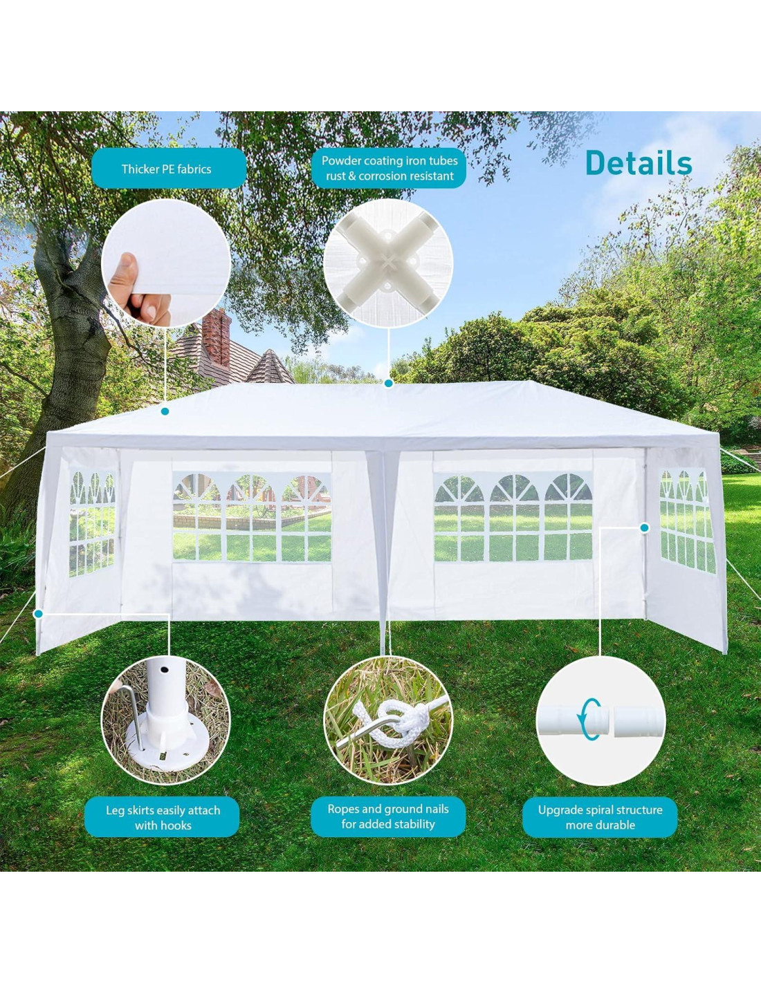 - Paredes Laterales Versátiles: Nuestras carpas de 10x20 para fiestas vienen con 4 paredes laterales removibles. Puedes personalizar el diseño de la carpa para satisfacer tus necesidades específicas, proporcionando sombra, ventilación y privacidad según lo desees para momentos agradables con familiares y amigos.