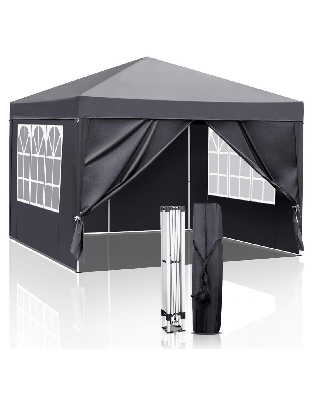 Carpa de Patio, 10' x 10' Gazebo Instantáneo con 4 Paredes Laterales, Altura Ajustable, Impermeable, Resistente a UV, Incluye Bolsa de Transporte, 26.7 lbs (12.1 kg) Características: Amplia carpa de 10' x 10' que ofrece 100 sq. ft. (9.3 m) de sombra para grandes reuniones y eventos al aire libre. Viene con una conveniente bolsa de transporte para fácil transporte y almacenamiento. Piernas ajustables con 3 posiciones de altura para adaptarse a tus preferencias. Incluye 4 paredes laterales, 4 cuerdas, 8 estacas y otros accesorios necesarios para una instalación segura. Diseño versátil que la hace adecuada para patios, jardines o camping. Especificaciones: Dimensiones Totales: 10' x 10' x 8.4' (300 cm x 300 cm x 255 cm) Material: Tela Oxford 210D y marco de metal Peso: 26.7 lbs (12.1 kg) Color: Carpa superior gris oscuro con marco blanco Paquete Incluye: 1 x Gazebo 1 x Instrucciones de Montaje